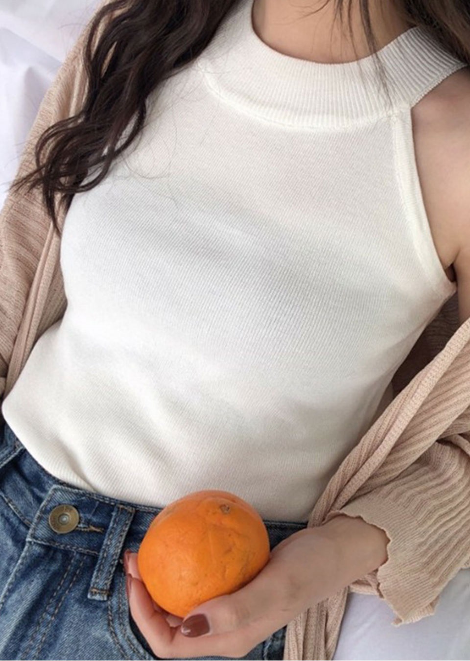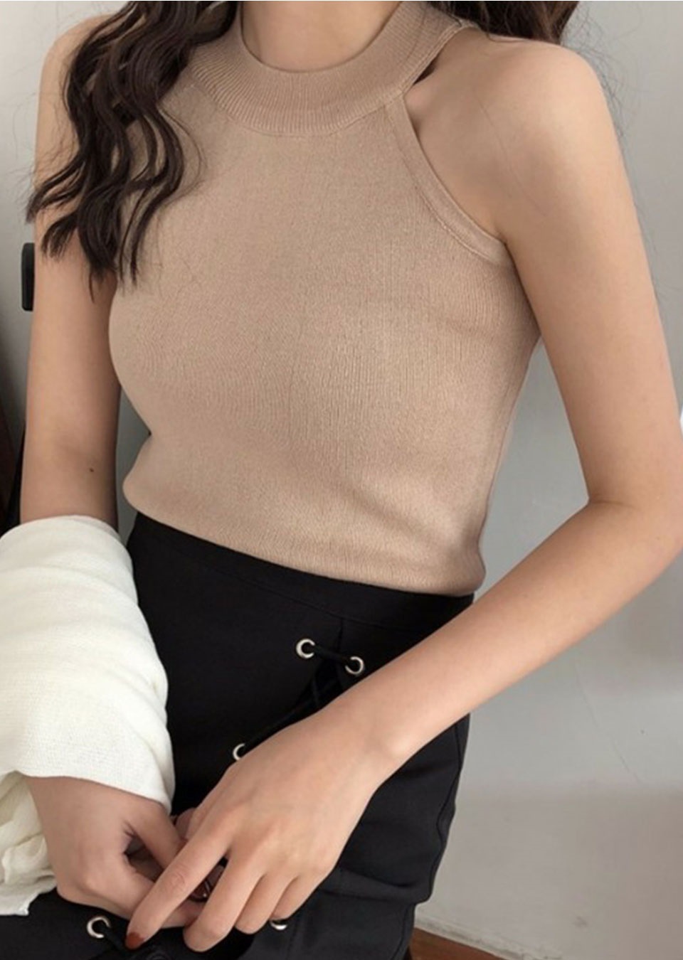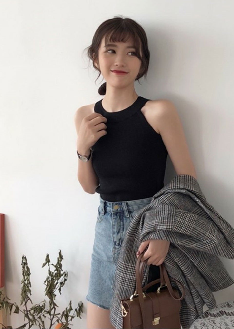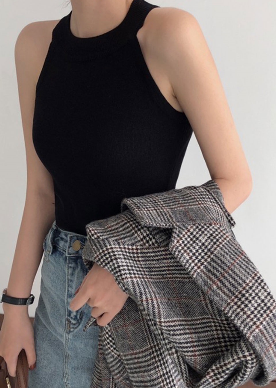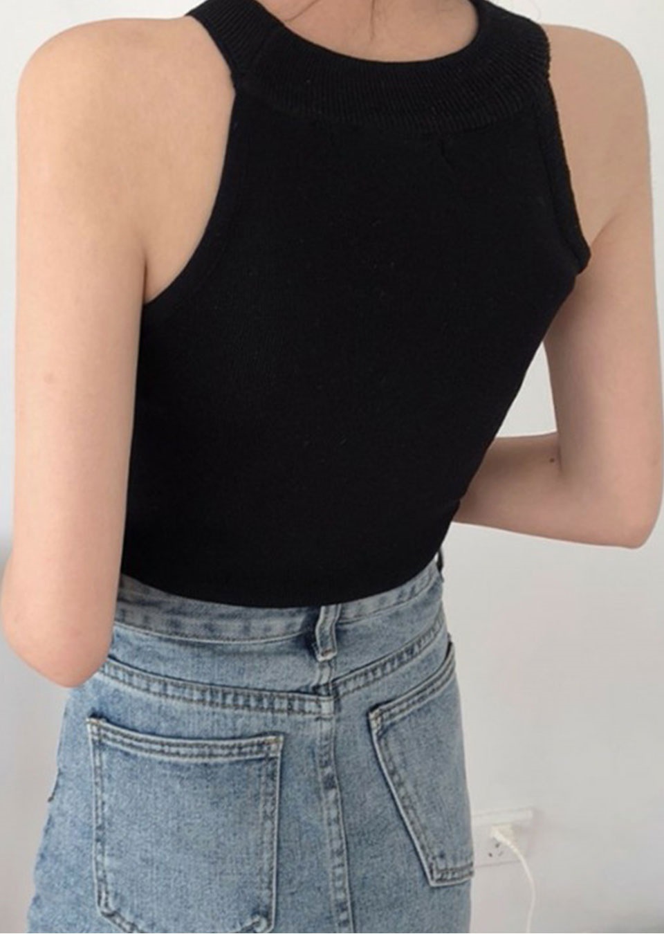 슬링 여성의 여름 짧은 니트 외부와 블랙 니트 넥 조끼 간단한 민소매 기본 셔츠 최고 트렌디스토어 가기