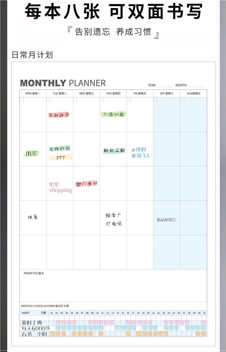 벽걸이 레코드 북 큰 빈 A4 달력 간단한 창조적 인 노트 주간 계획 책 사무실 연구 등록