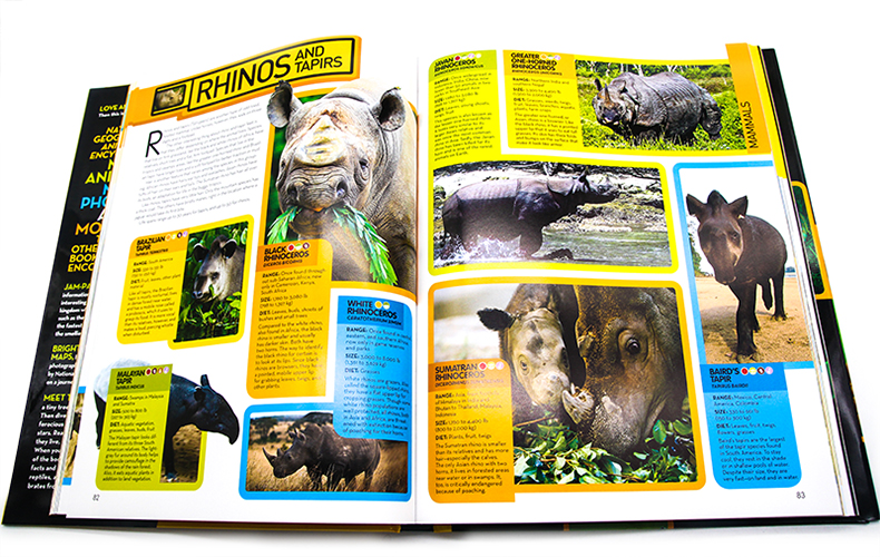 精选数百位国家地理金牌摄影师历时数十年拍摄的1600多张动物图片,详尽介绍2500多种动物的特点、习性、栖息地、生存现状以及独特本领等相关知识,内容鲜活有趣。动物们逼真传神的“生活照”,为读者展示出接近动物原生态的生活场景,独家收录的17份野外考察报告,讲述美国国家地理探险家们的野外冒险故事——他们在冰天雪地的北极跟北极狼“交朋友”,深入海底与濒临灭绝的居氏鼬鲨“做游戏”。