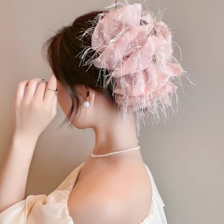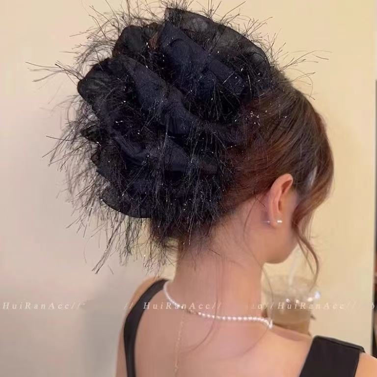 친구가 묻는 머리핀 ~ 검은 거품 클립 여성 높은 감각 활 머리 코일 상어 클립