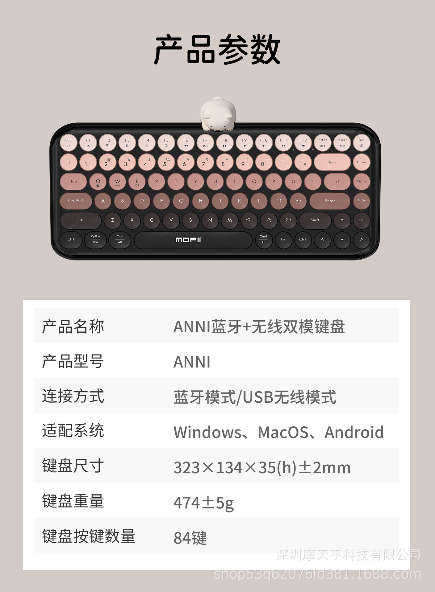 MOFII 스카이 스크래퍼 ANNI 듀얼 모드 무선 블루투스 키보드 기계 외부 휴대 전화 태블릿 공장 느낌스토어 가기