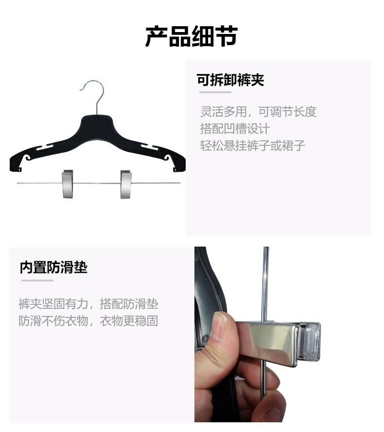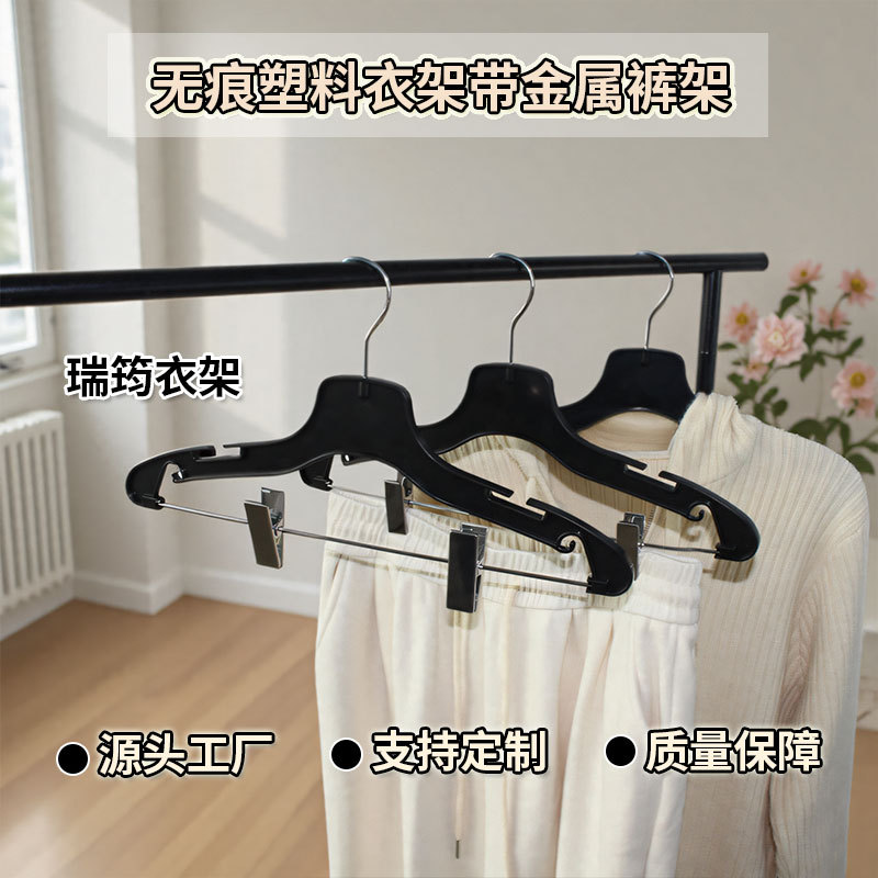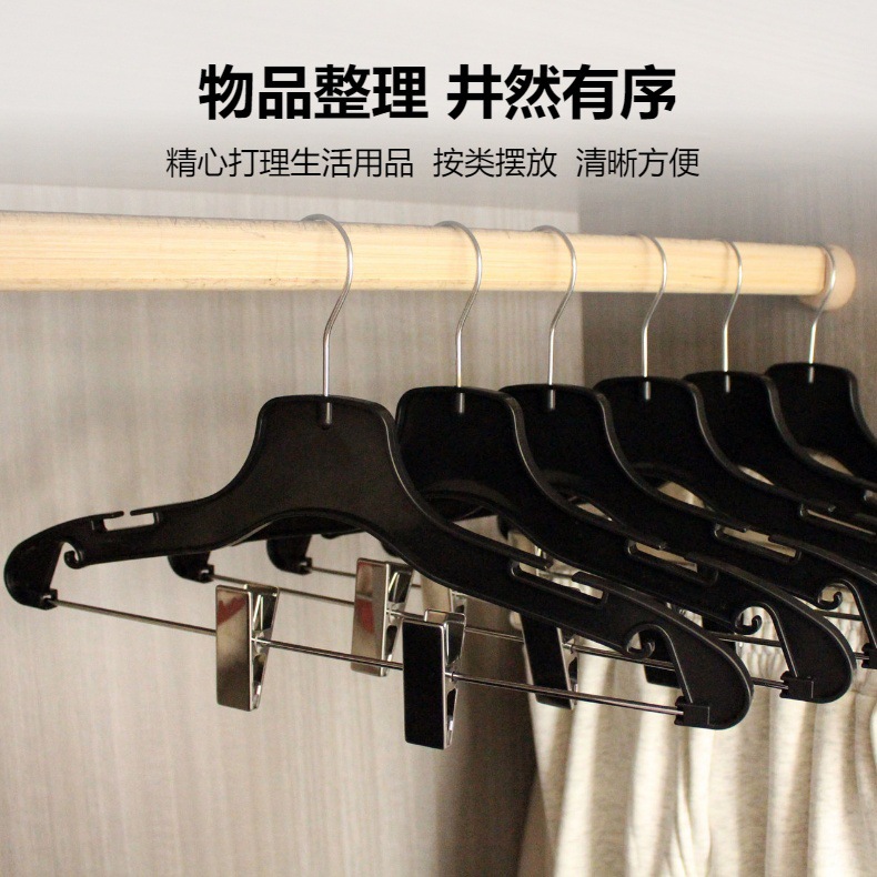 클립이 있는 검은색 플라스틱 바지 걸이, 미끄럼 방지, 흔적 없는 옷 걸이, 호텔 세탁물, 드라이클리닝, 옷걸이, 가정용 옷핀스토어 가기