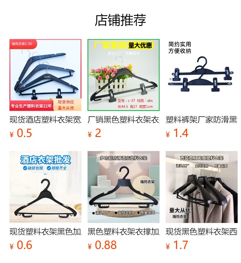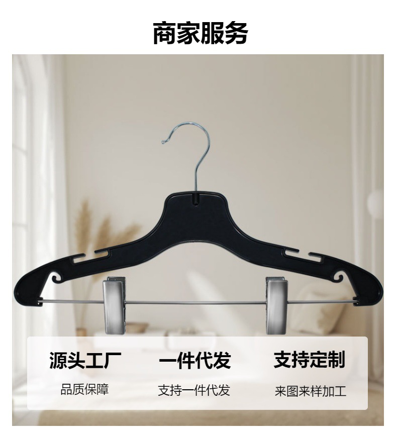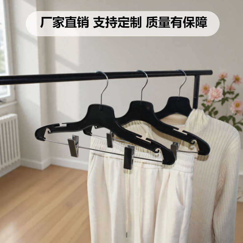 现货黑色衣架塑料裤架带夹子防滑无痕衣挂酒店洗衣房衣架家用衣夹定制