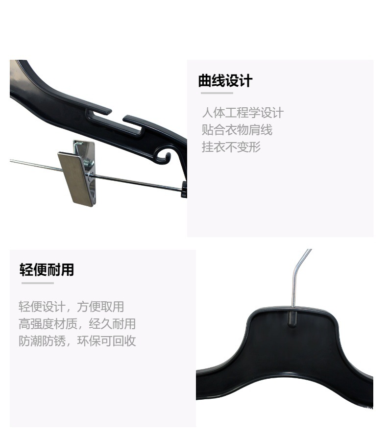 • 바지 클립이 달린 검정색 플라스틱 옷걸이 C-55