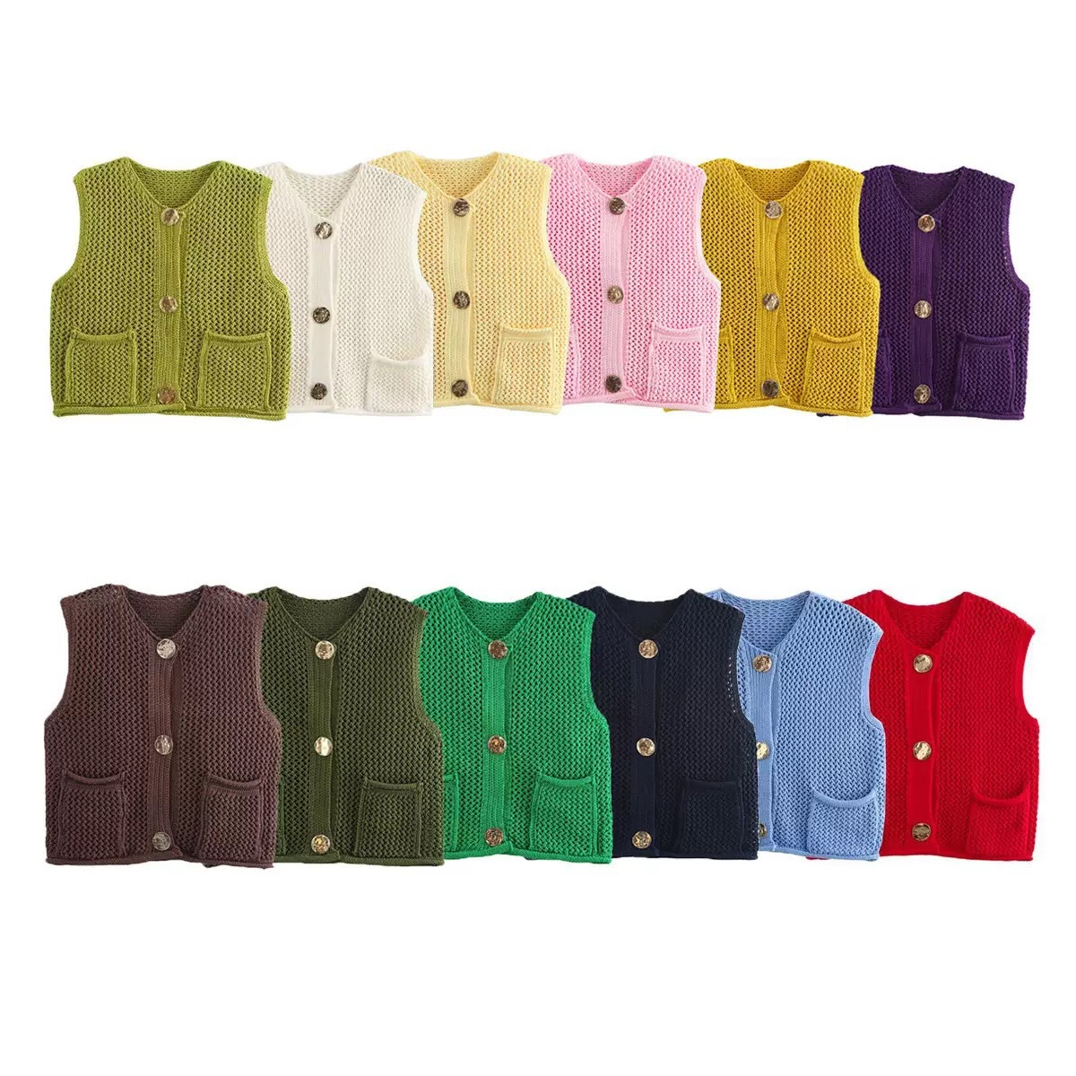 국경 2025 가을과 겨울 새로운 니트웨어 유럽과 미국의 국경 여성 의류 거리 패션 훅 빈 조끼 여성스토어 가기