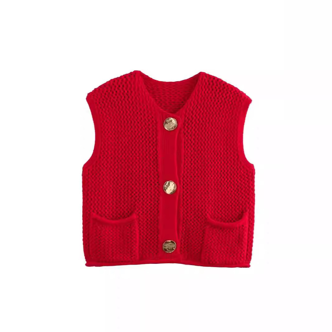 국경 2025 가을과 겨울 새로운 니트웨어 유럽과 미국의 국경 여성 의류 거리 패션 훅 빈 조끼 여성