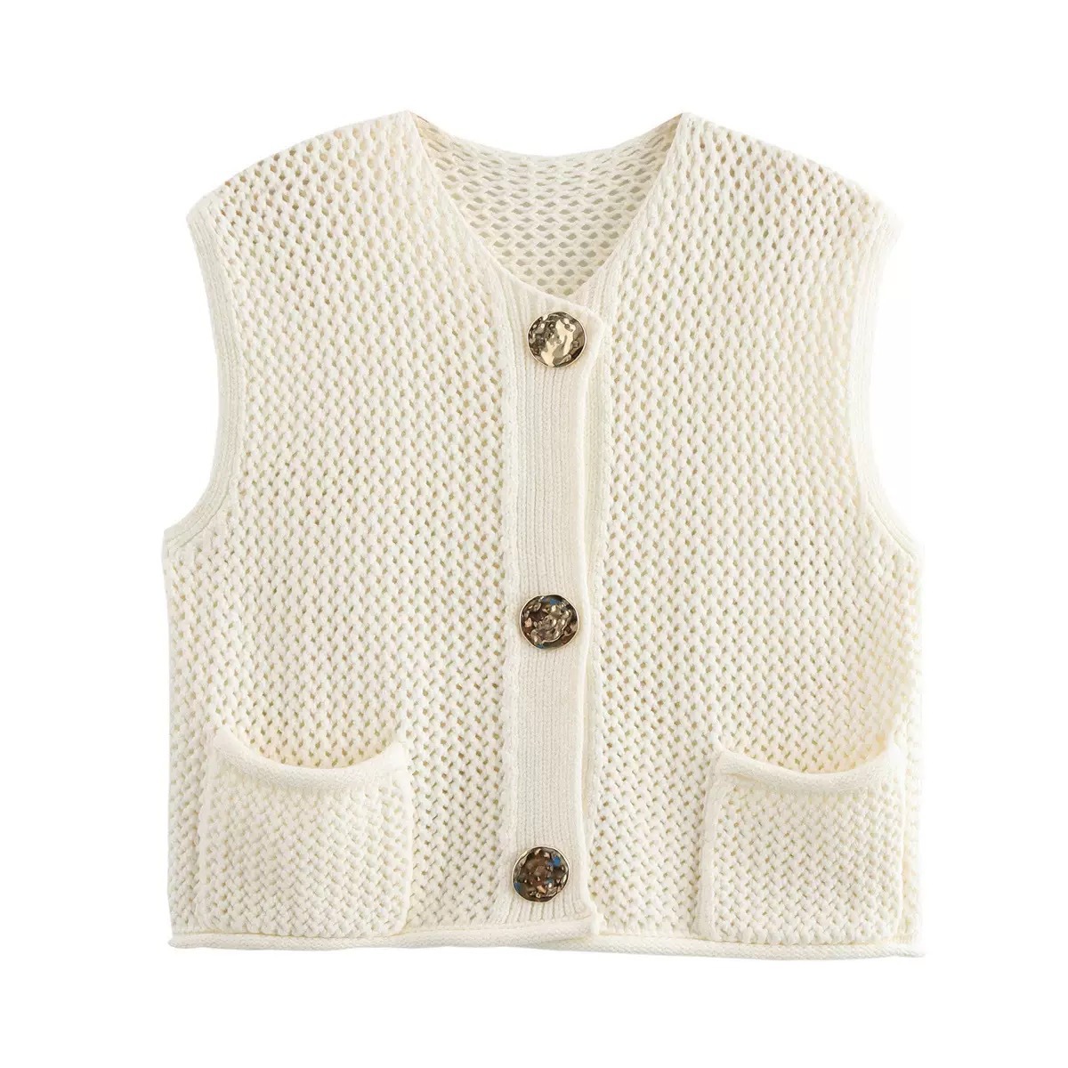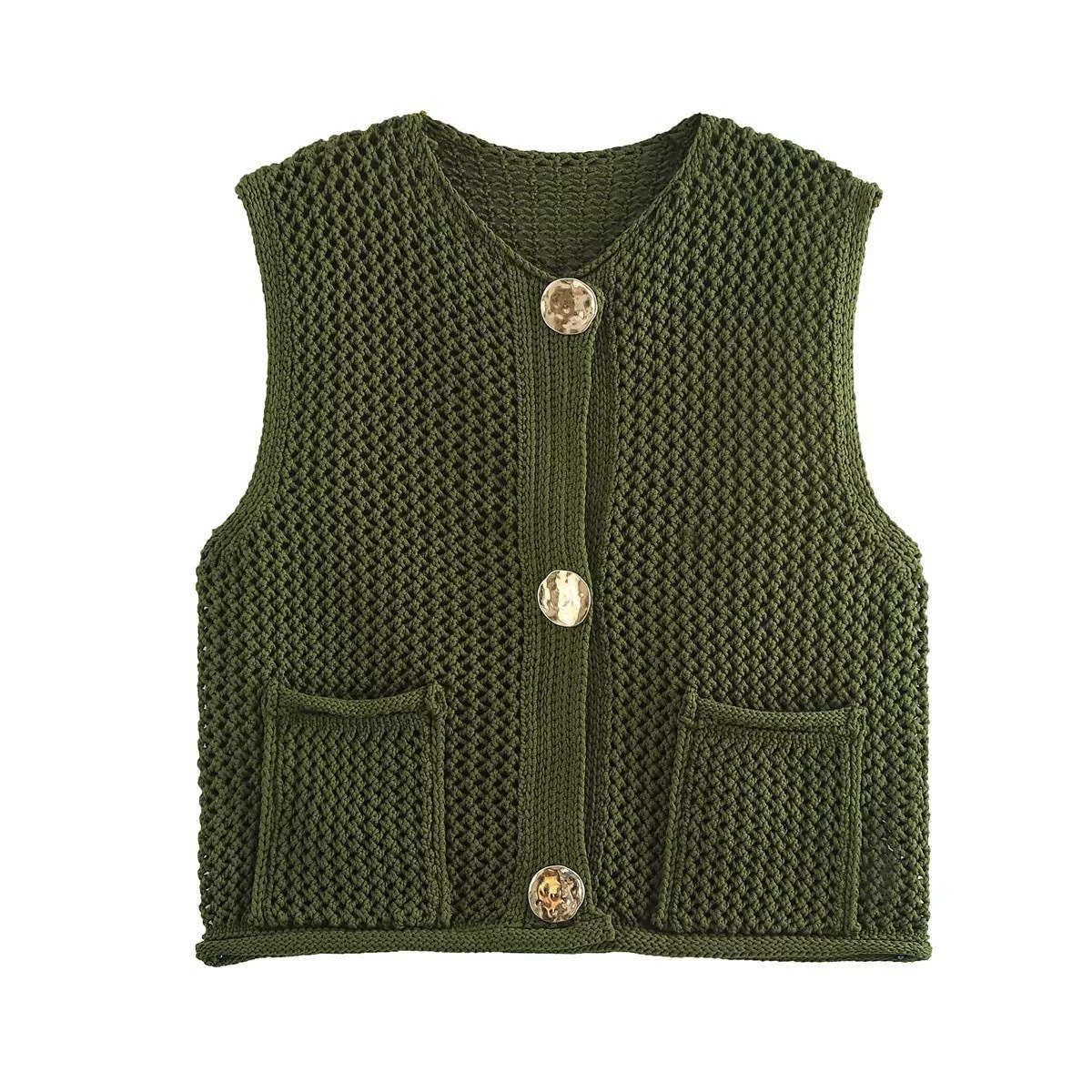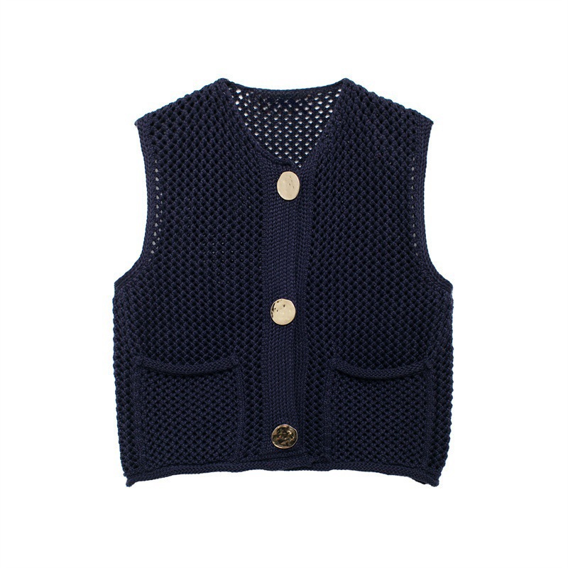 跨境2025秋冬新品针织衫欧美跨境女装街头时尚勾针镂空马甲背心女