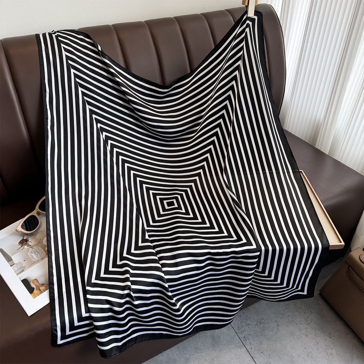 스트라이프 간단한 스카프 스퀘어 스카프 새틴 모조 실크 스카프 캐주얼 패션 헤드 스카프 목 목도리 새로운 봄과 여름 패션스토어 가기
