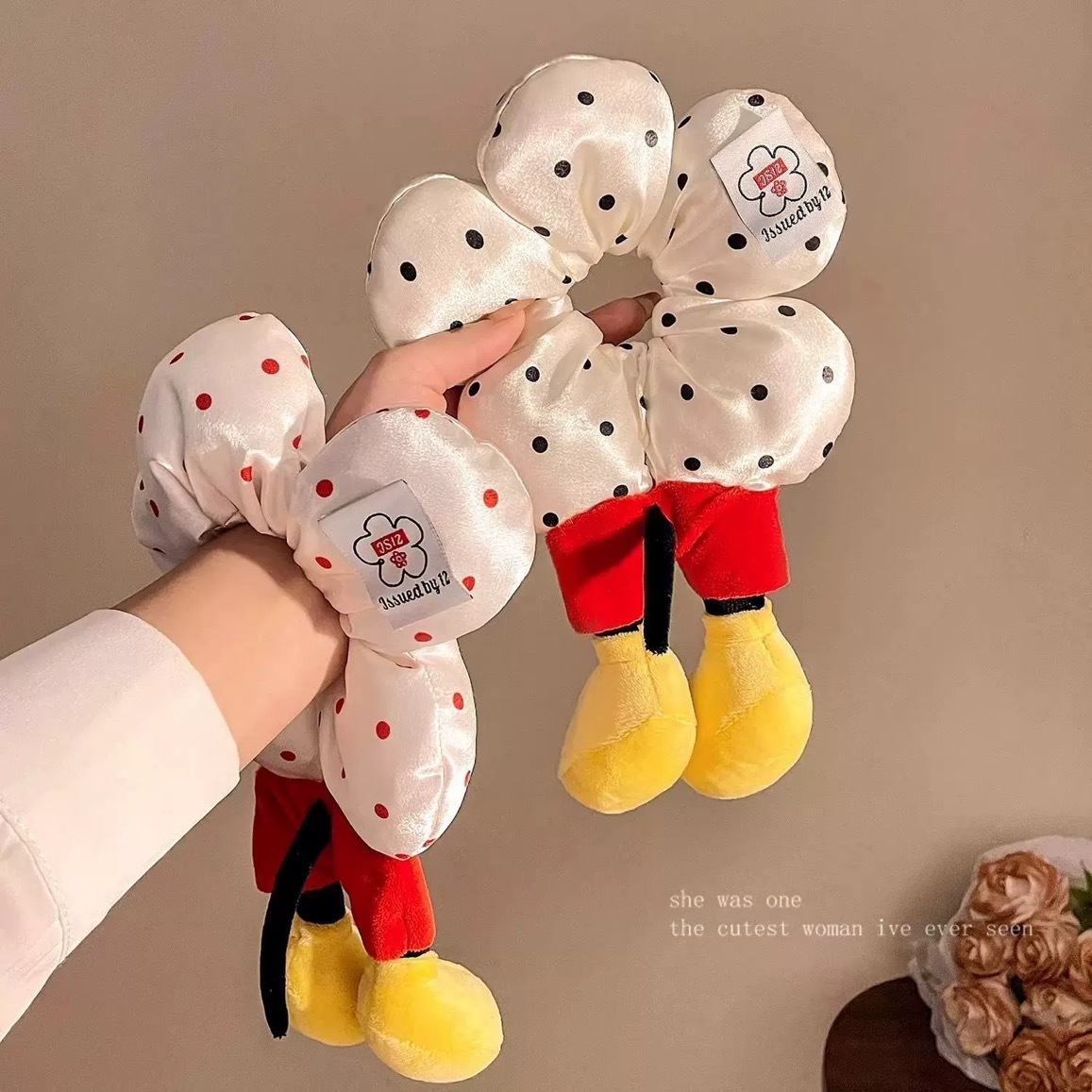 귀여운 만화 미키 엉덩이 꽃 큰 장내 머리 반지 여성의 높은 감각 창조적 인 헤어 액세서리 볼 헤드 로프 새로운 스타일스토어 가기