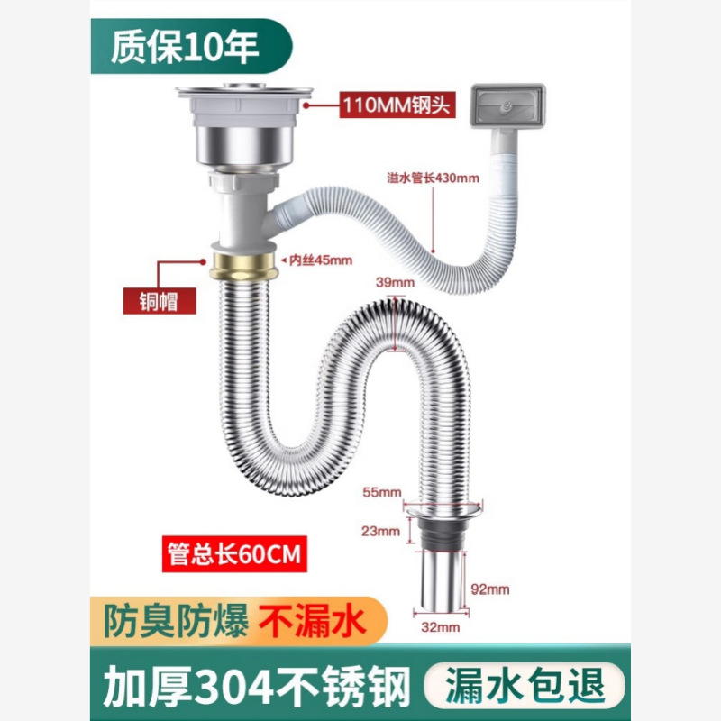 • 두꺼운 이중 홈 304 스테인레스 스틸 파이프 60CM + 오버플로 구멍 * 냄새 방지