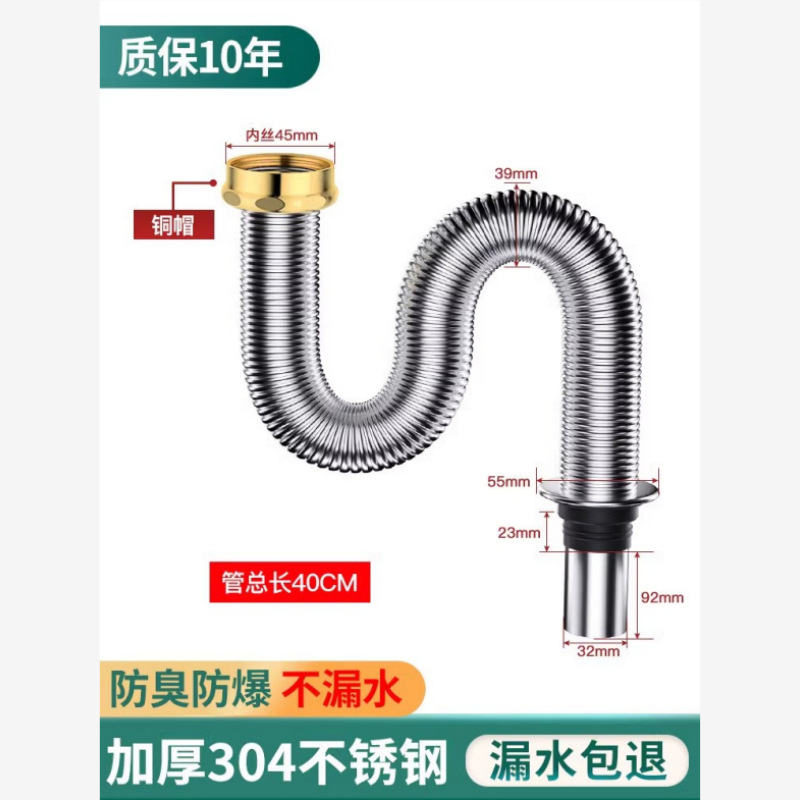 • [40CM] 두꺼운 304 스테인레스 스틸 파이프 * 냄새 방지 * 누수 보장