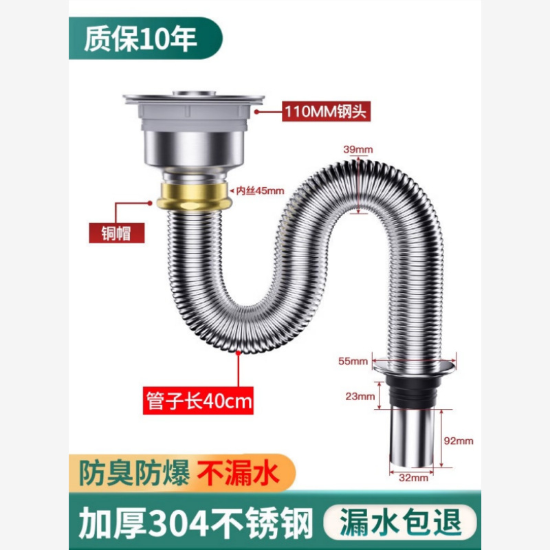 • 두꺼운 이중 홈 304 스테인레스 스틸 파이프 40CM + 강철 헤드 2개 + 오버플로 구멍 * 냄새 방지