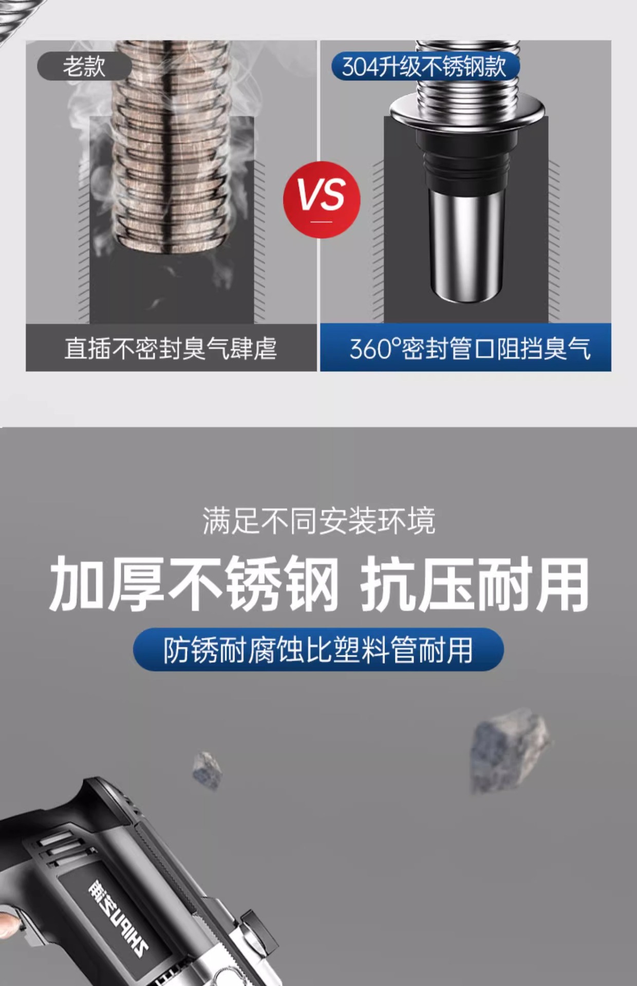 • [80CM] 두꺼운 304 스테인레스 스틸 파이프 + 스틸 헤드 + 오버플로 구멍 * 냄새 방지