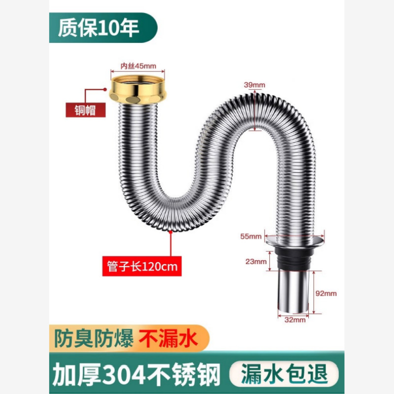 • [120CM] 두꺼운 304 스테인레스 스틸 파이프 * 냄새 방지 * 누수 보장