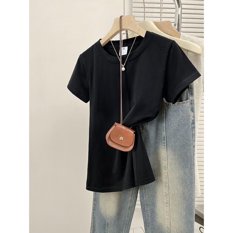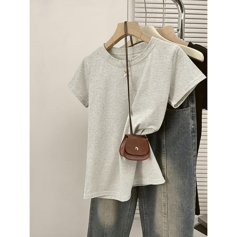 여름 라운드 넥 1 어깨 티셔츠 여성용 반팔 슬림 핏 슬리밍 캐주얼 올 매치 슈퍼 니스 그레이 쇼트 탑스토어 가기