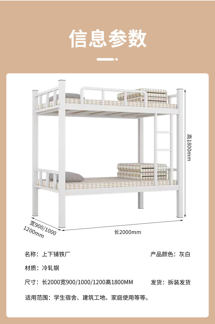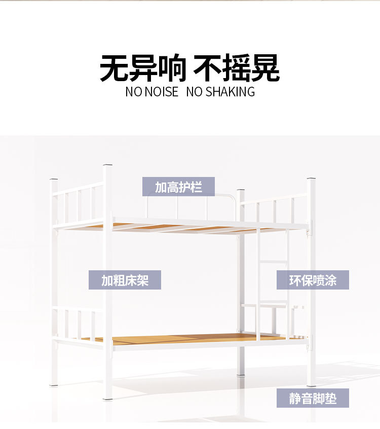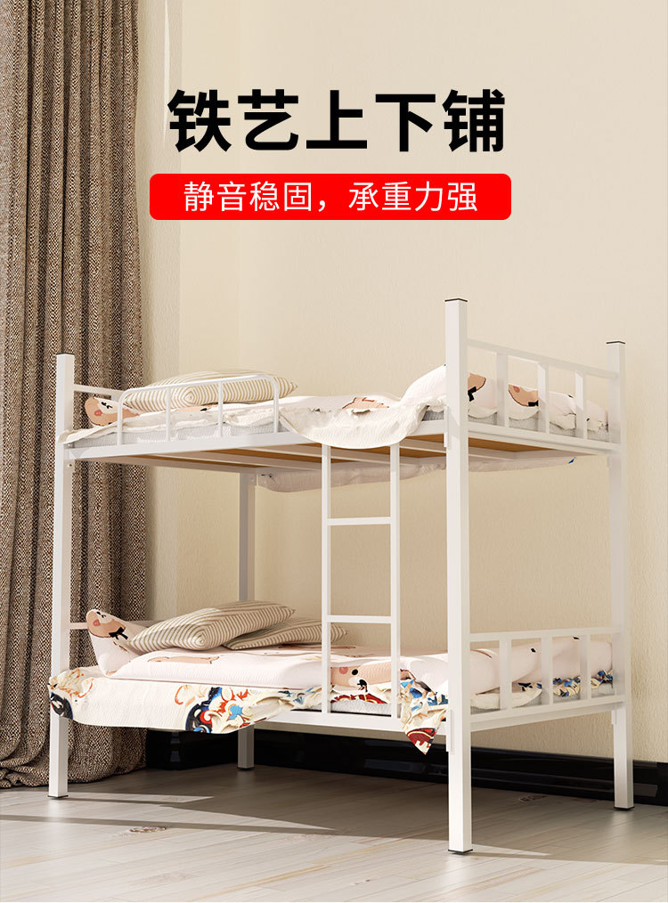 두꺼운 강철 이층 침대 더블 레이어 사각 파이프 침대 기숙사 침대 학생 높고 낮은 침대 건설 현장 선반 2 층 철제 침대