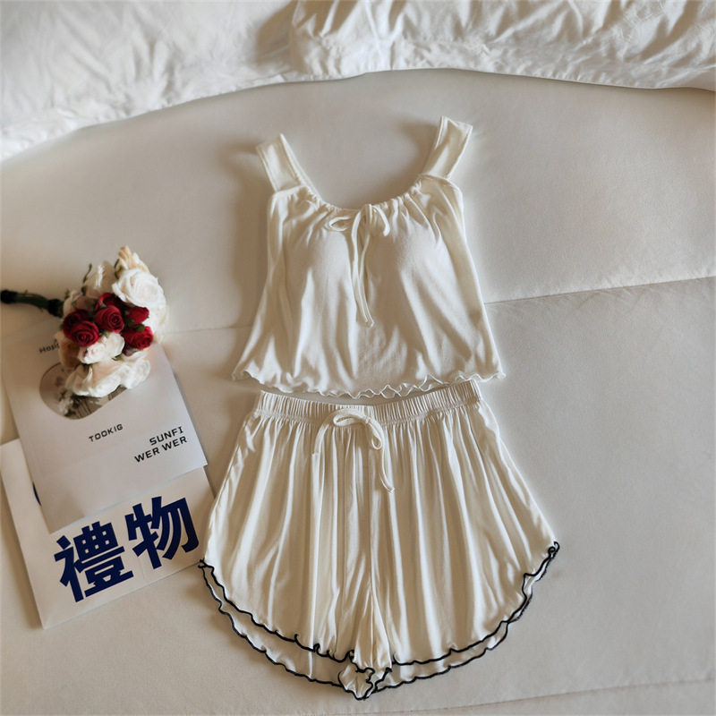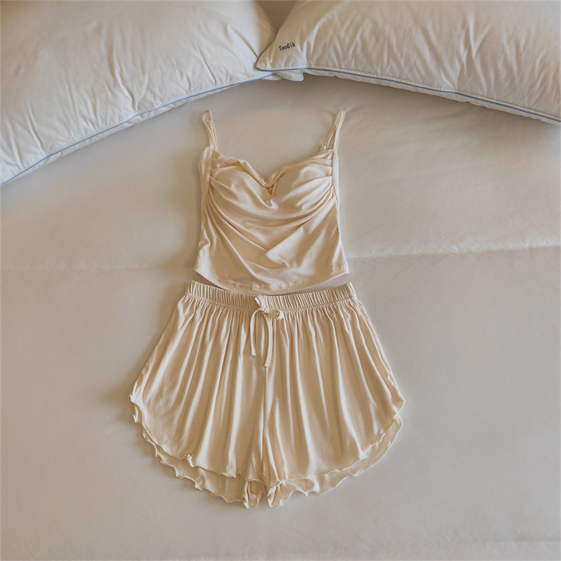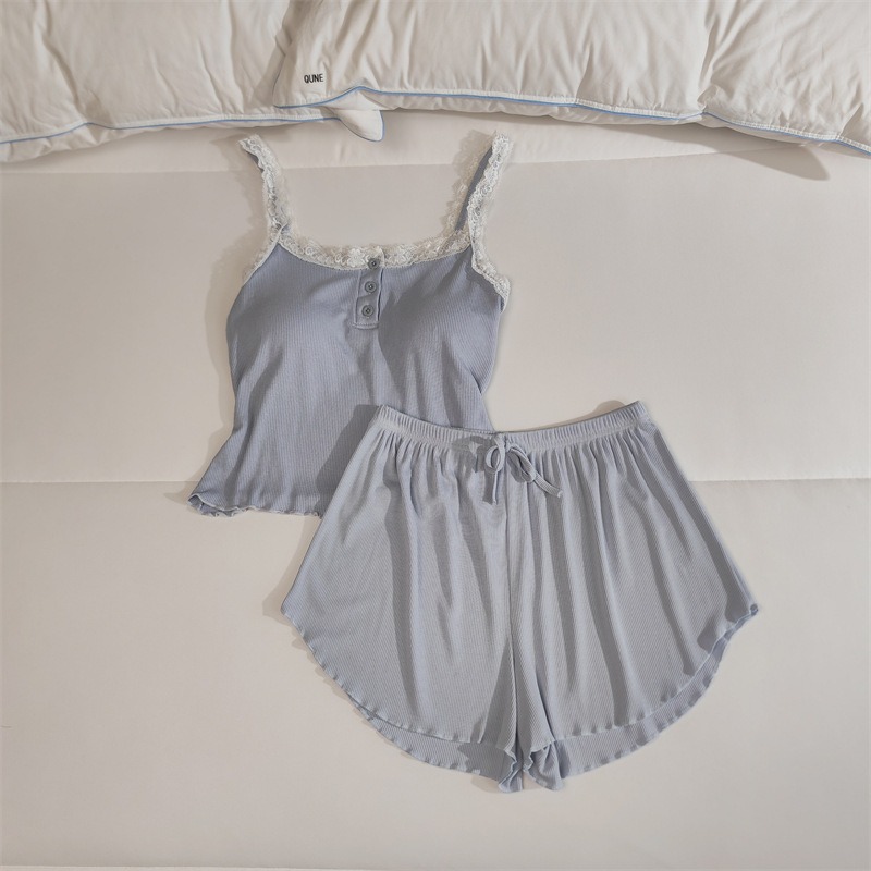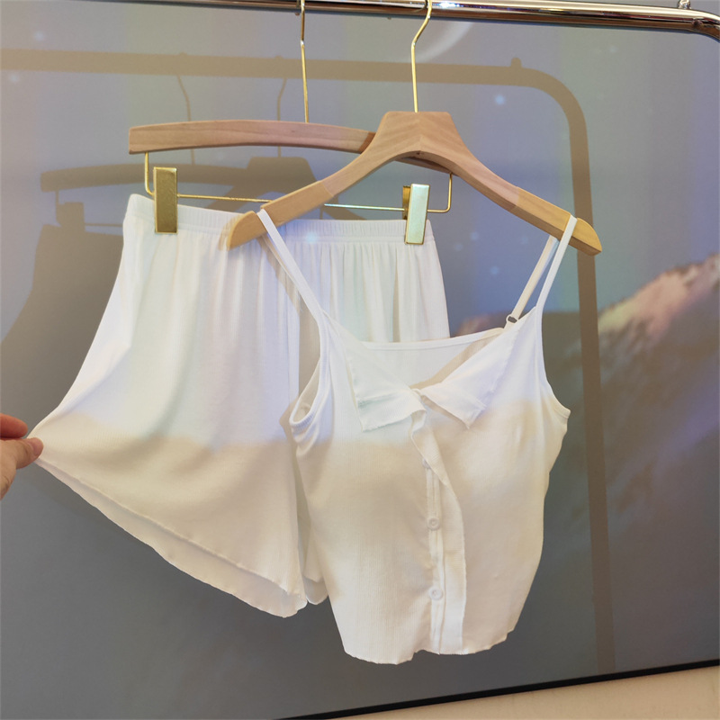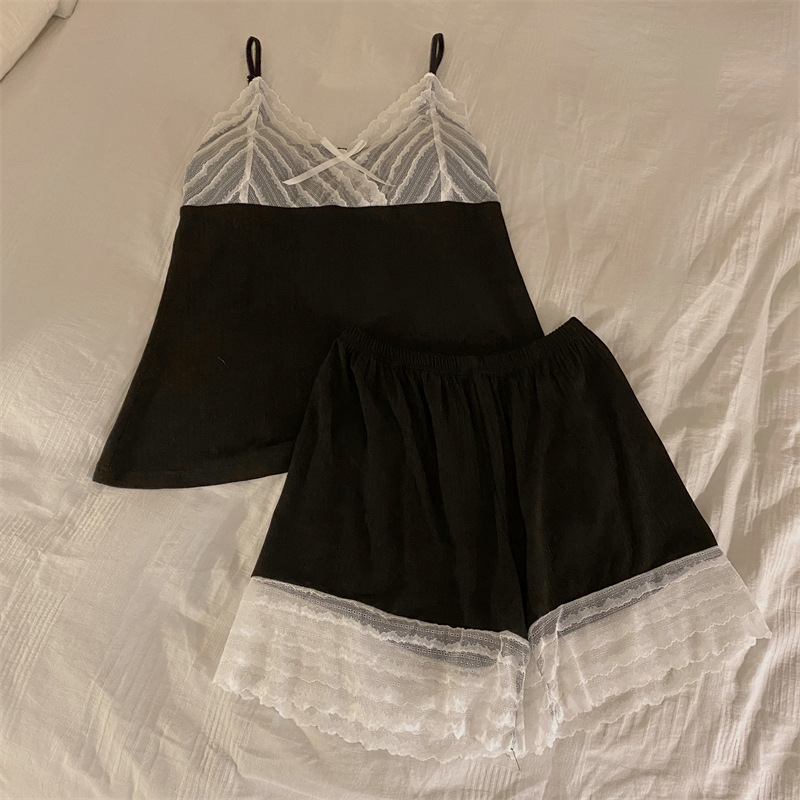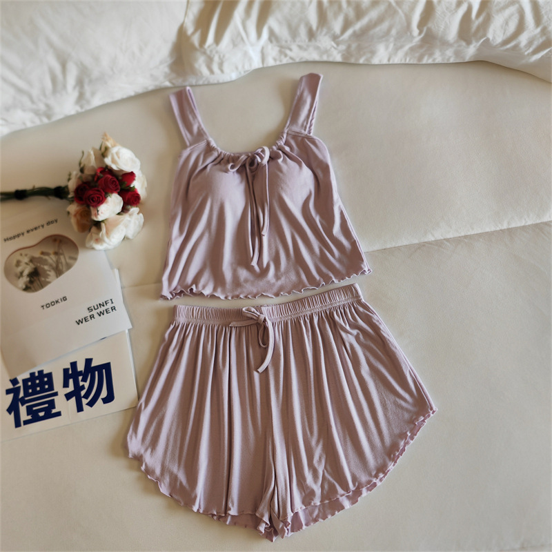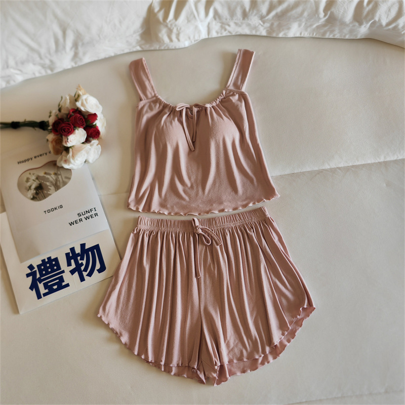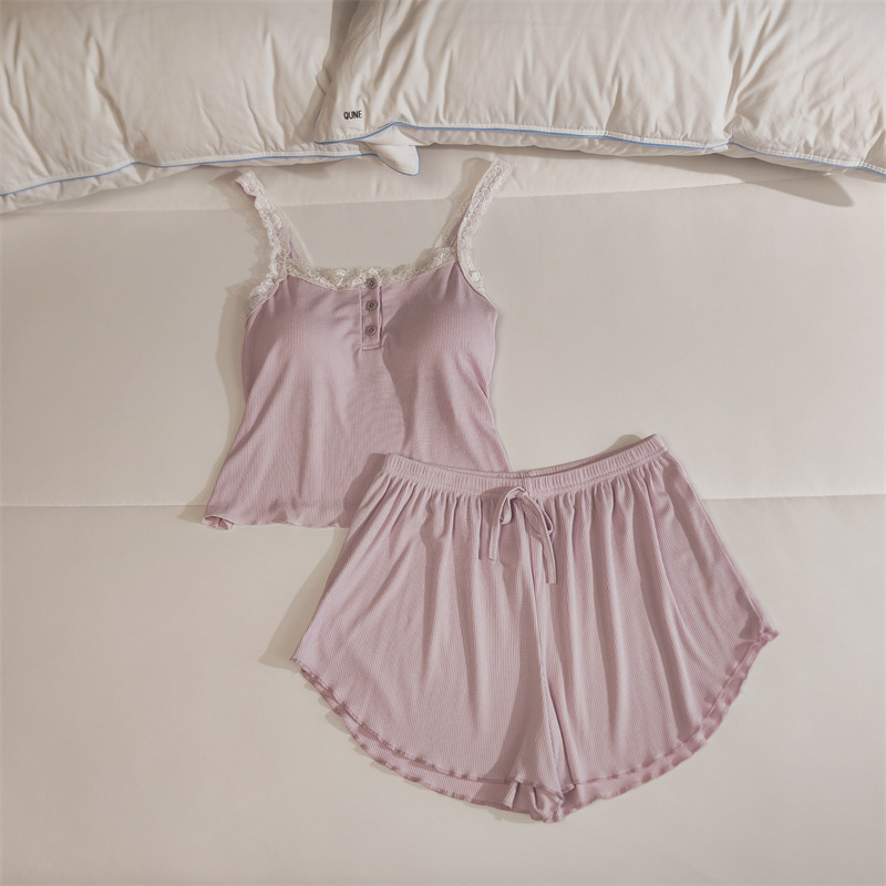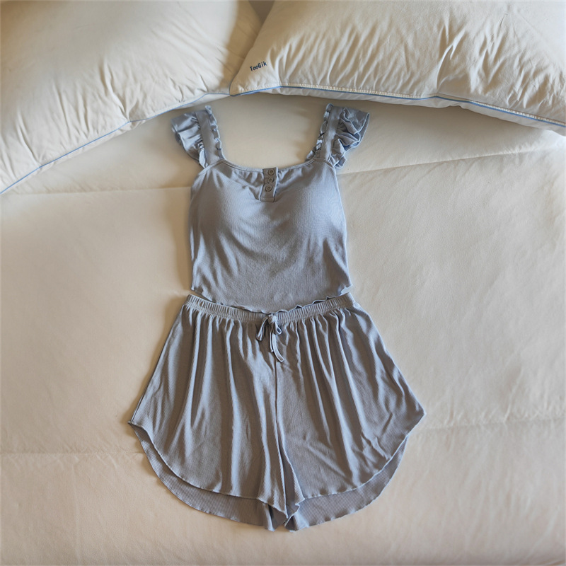 가슴 패드 여성의 여름 슬링 반바지 섹시한 귀 얇은 귀여운 폴라 도트 여성의 홈 의류 세트