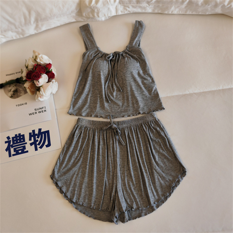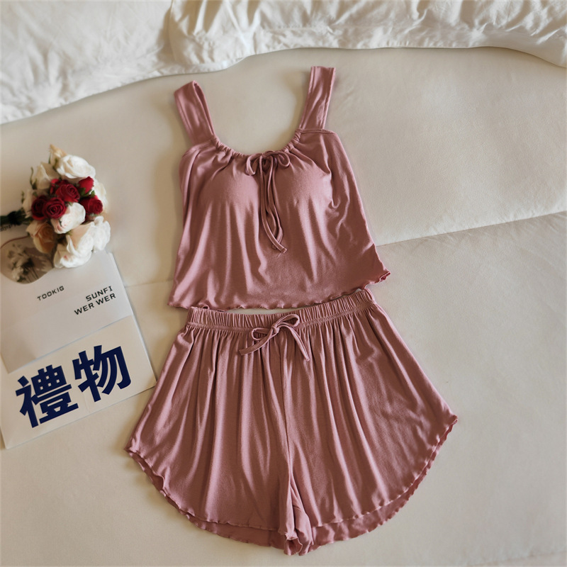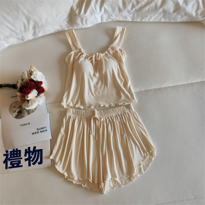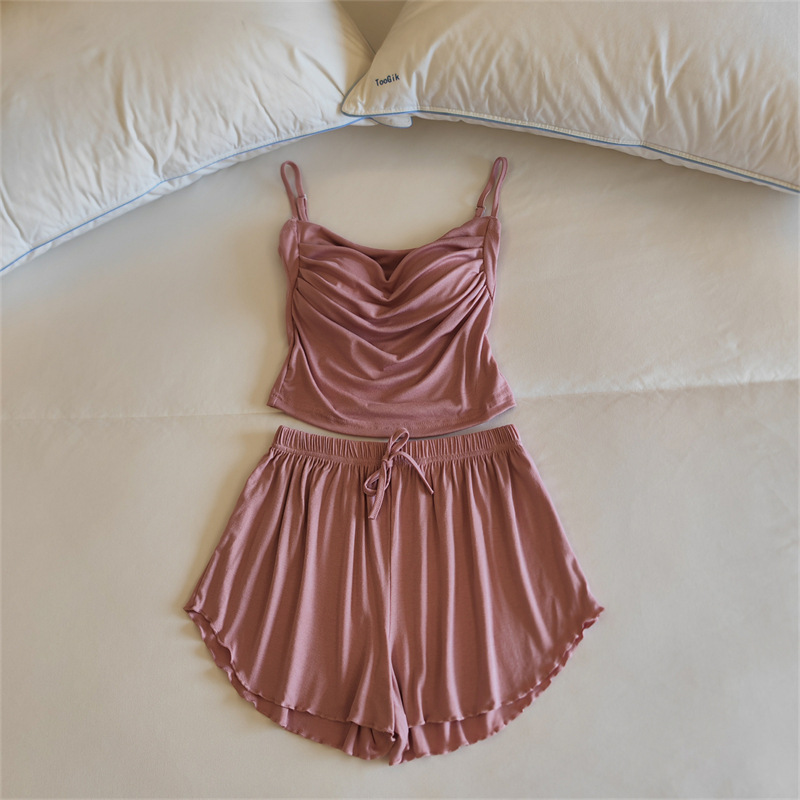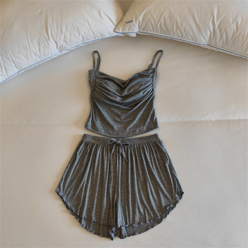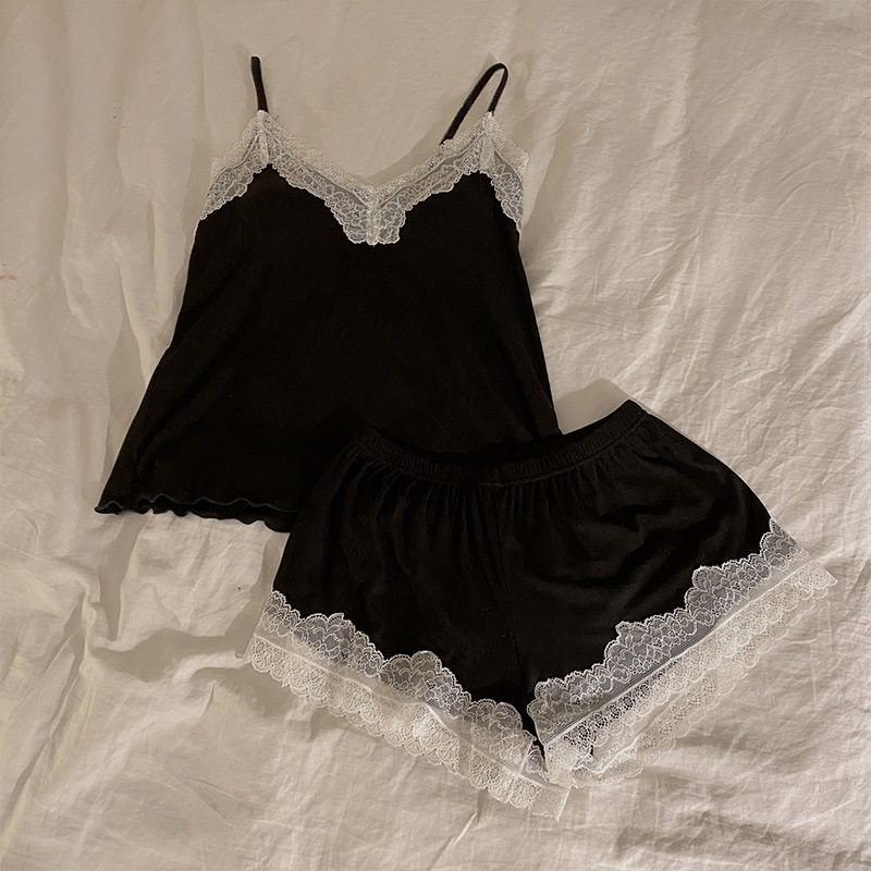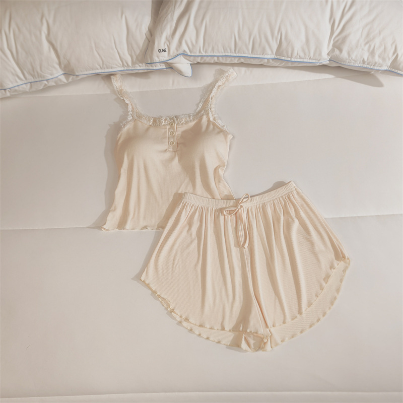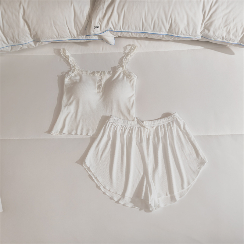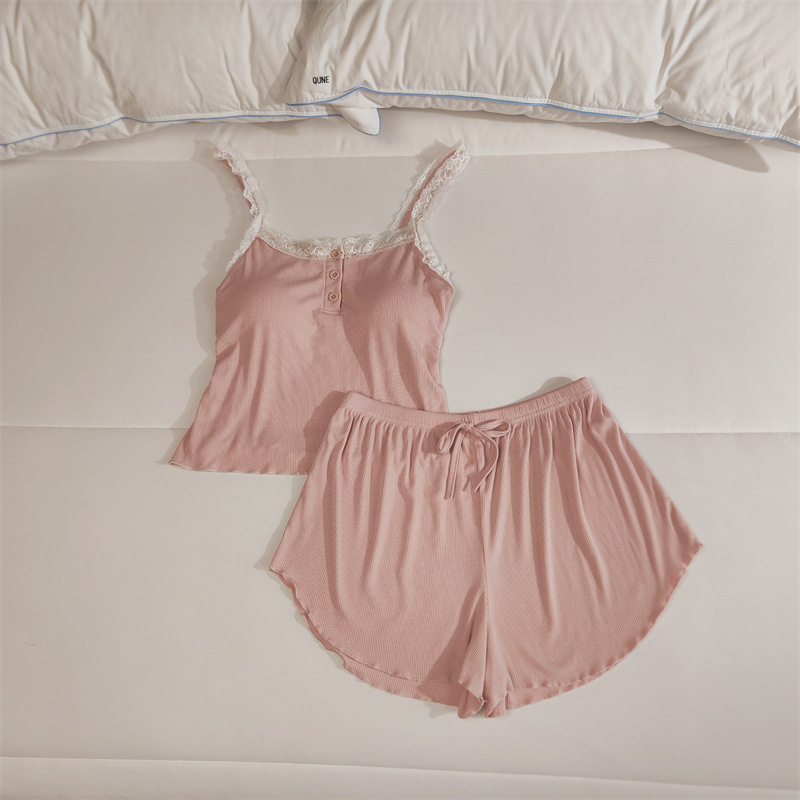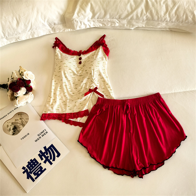 가슴 패드 여성의 여름 슬링 반바지 섹시한 귀 얇은 귀여운 폴라 도트 여성의 홈 의류 세트
