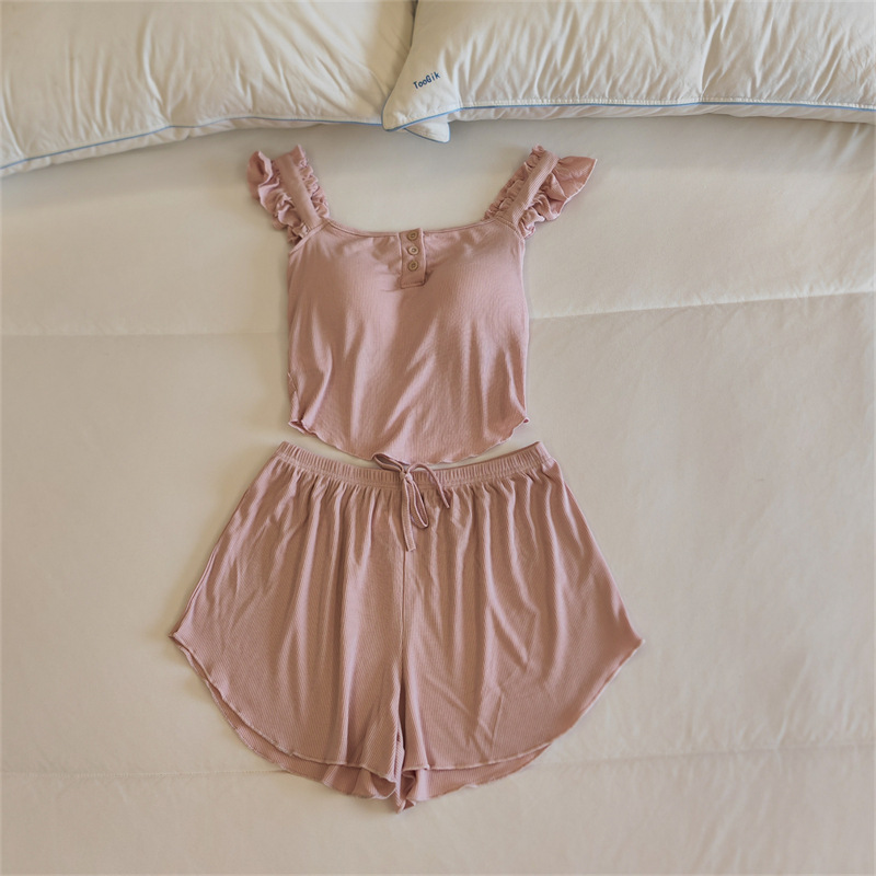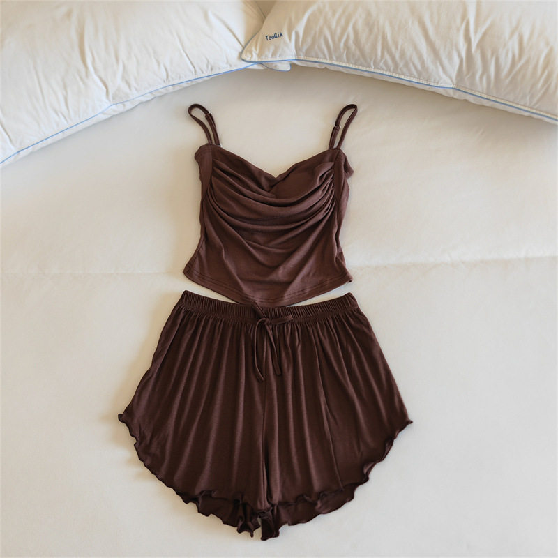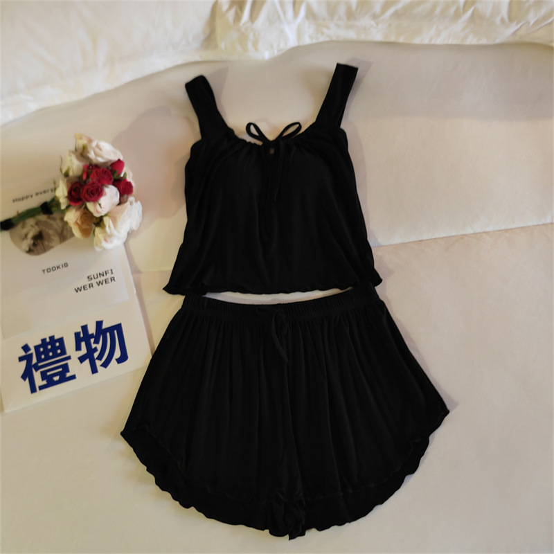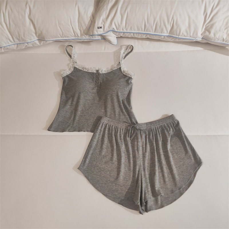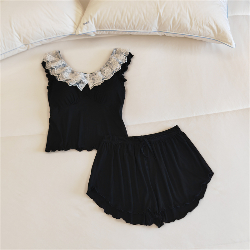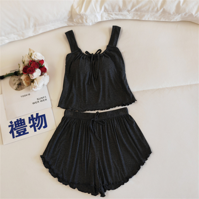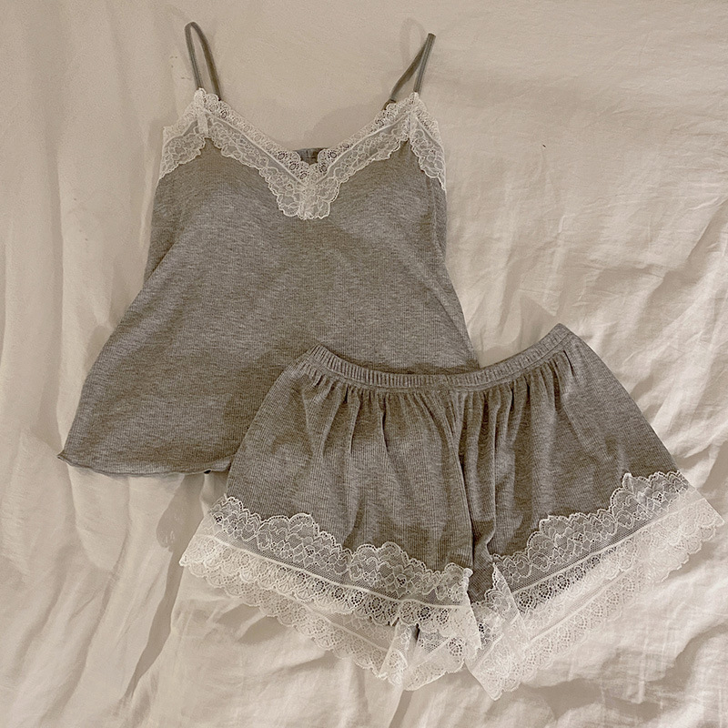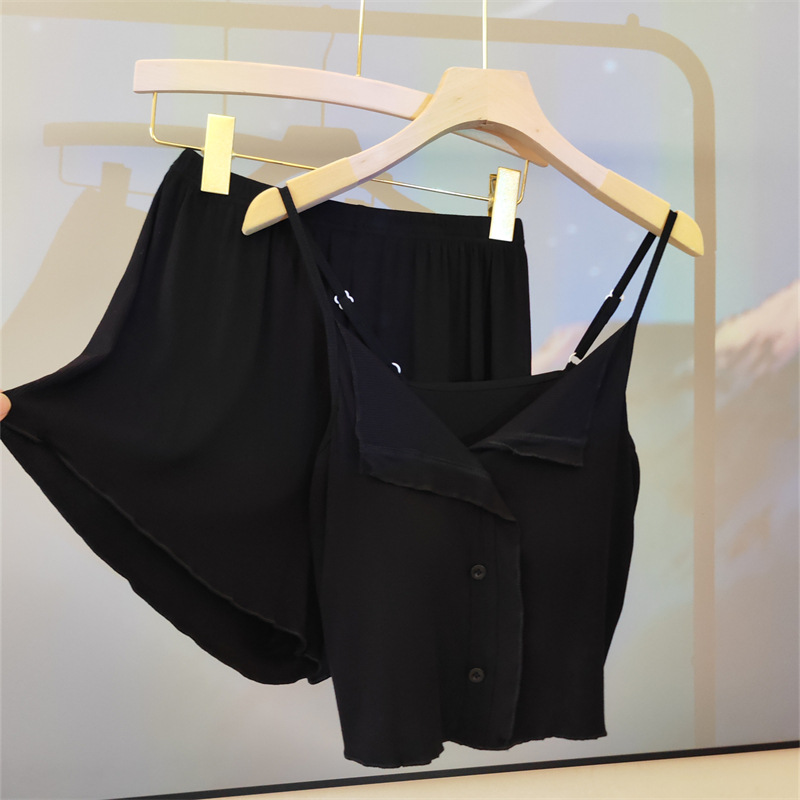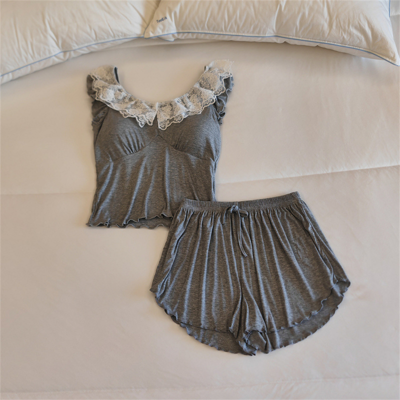가슴 패드 여성의 여름 슬링 반바지 섹시한 귀 얇은 귀여운 폴라 도트 여성의 홈 의류 세트