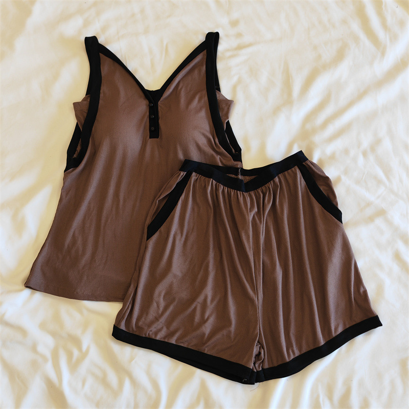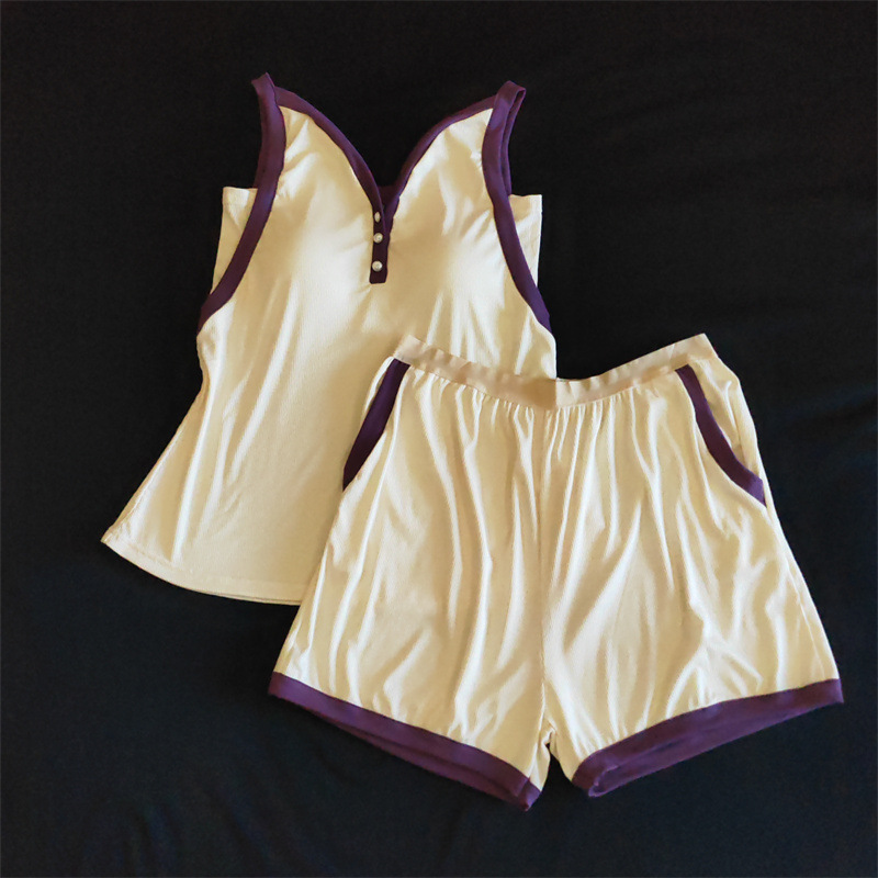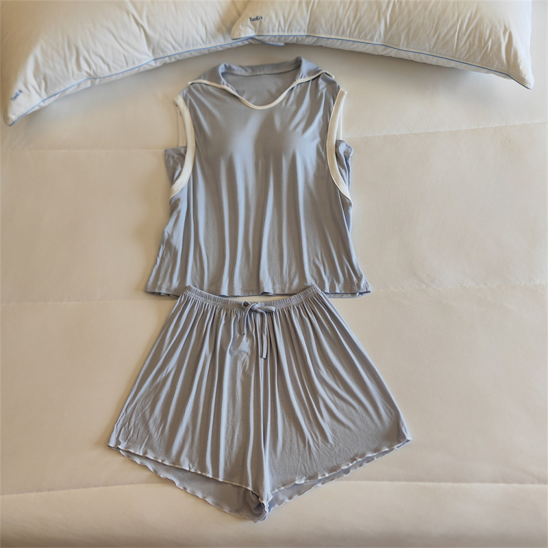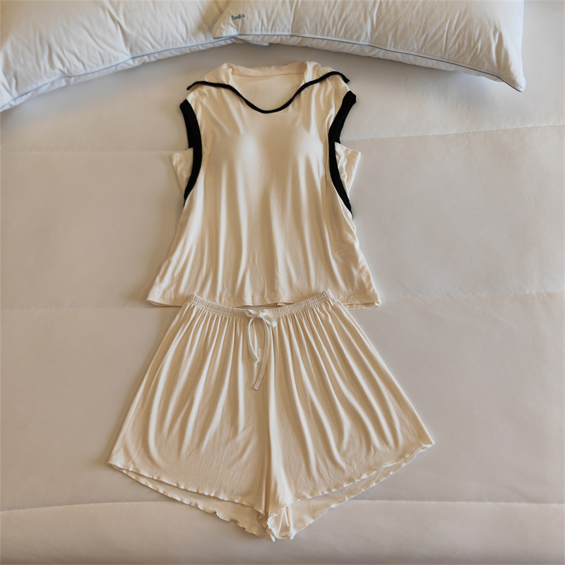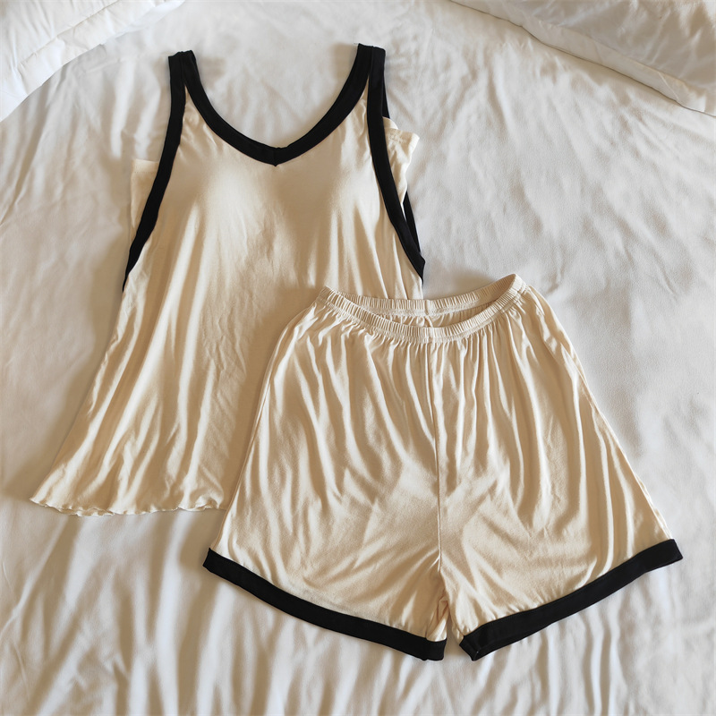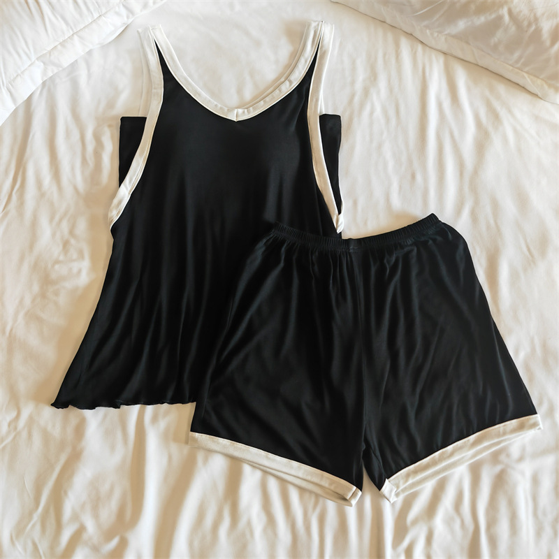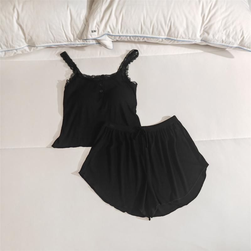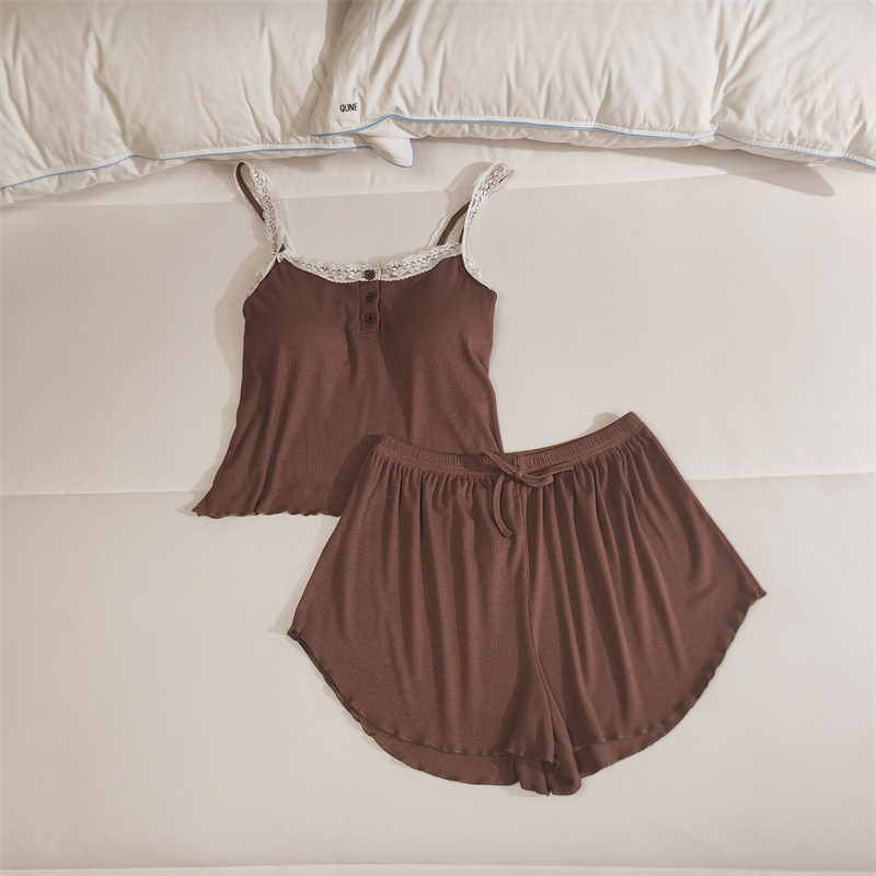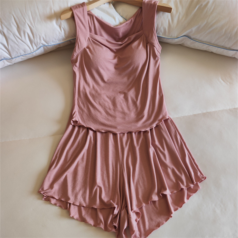 가슴 패드 여성의 여름 슬링 반바지 섹시한 귀 얇은 귀여운 폴라 도트 여성의 홈 의류 세트