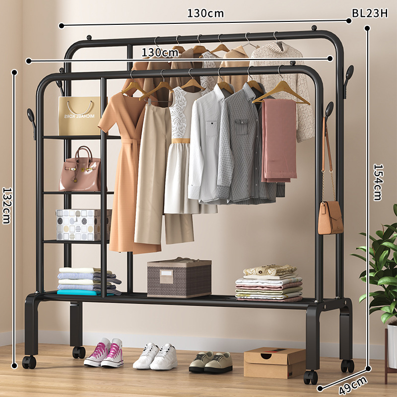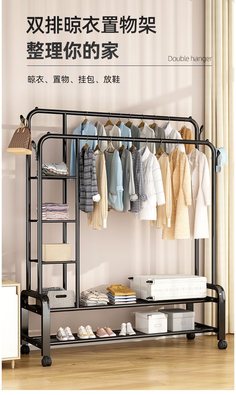 • 측면 수납망 더블 레이어 더블 폴 + 옷걸이 130 블랙 + 휠®