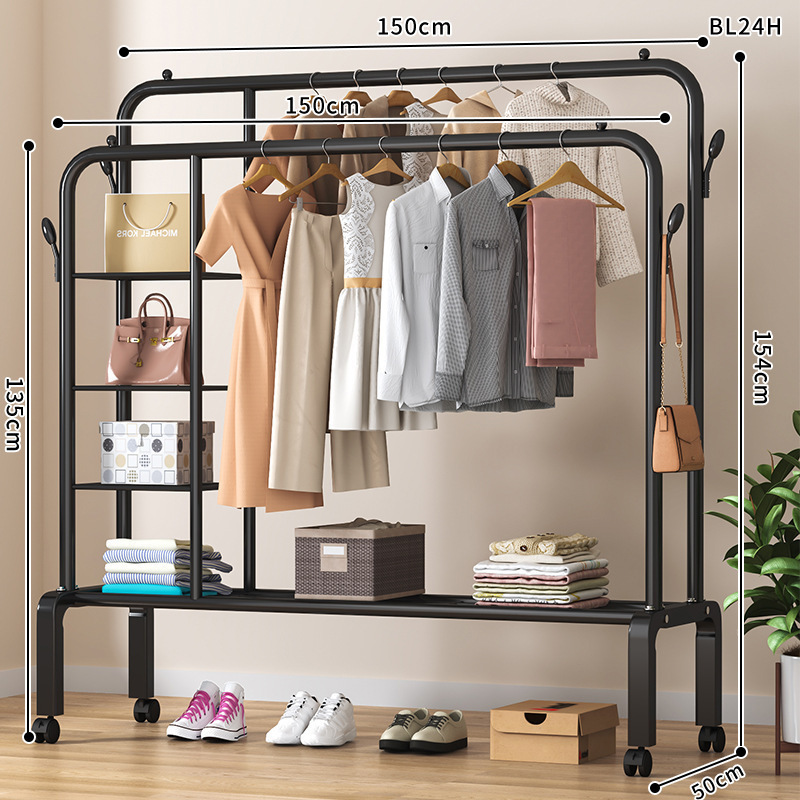 • 측면 수납망 더블 레이어 더블 폴 + 옷걸이 150 블랙 + 휠®
