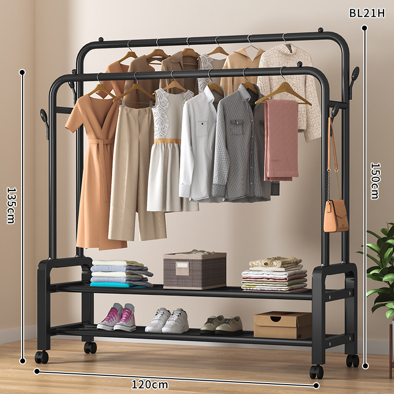 • 더블 레이어 더블 폴 + 코트 후크 150 블랙 + 휠®