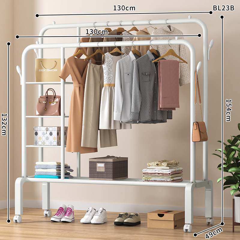 • 측면 수납망 더블 레이어 더블 폴 + 옷걸이 130 화이트 + 휠®