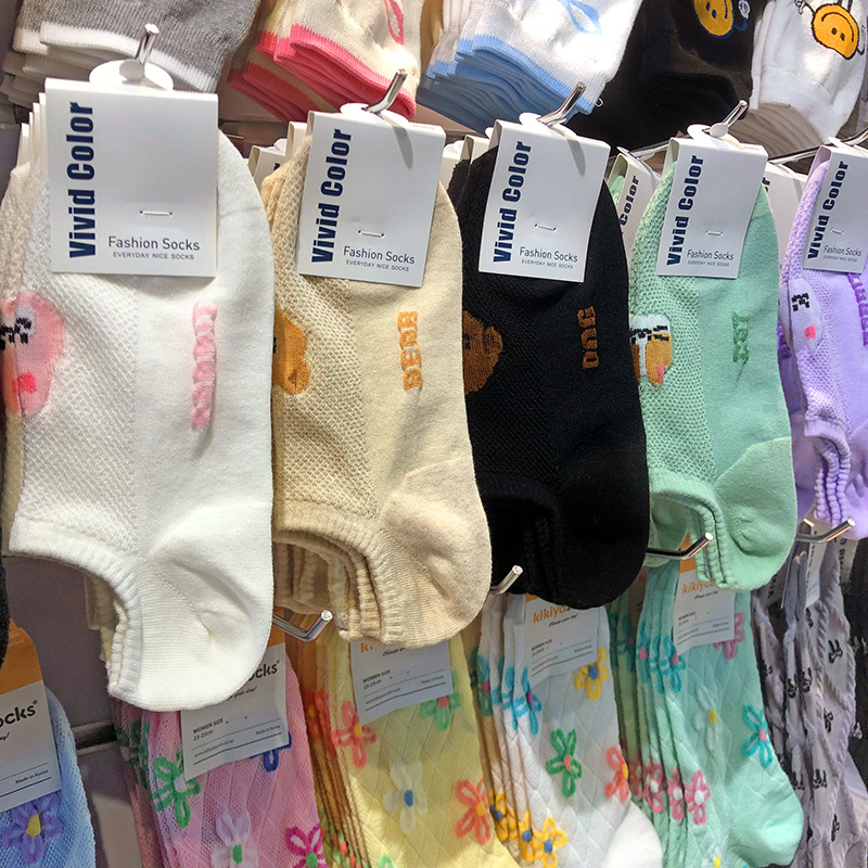 [재고] 생체 내 봄과 여름 새로운 중공 메쉬 보트 양말 한국 만화 소녀 보이지 않는 양말 얕은 입 방지