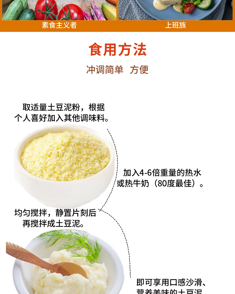 원래 인스턴트 으깬 감자 분말 750g 인스턴트 식사 대체 인스턴트 저지방 가방 서양 베이킹 원료 상업 및 가구스토어 가기