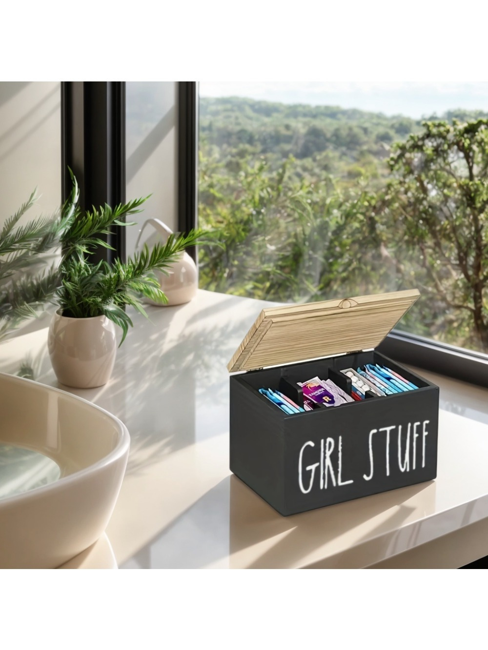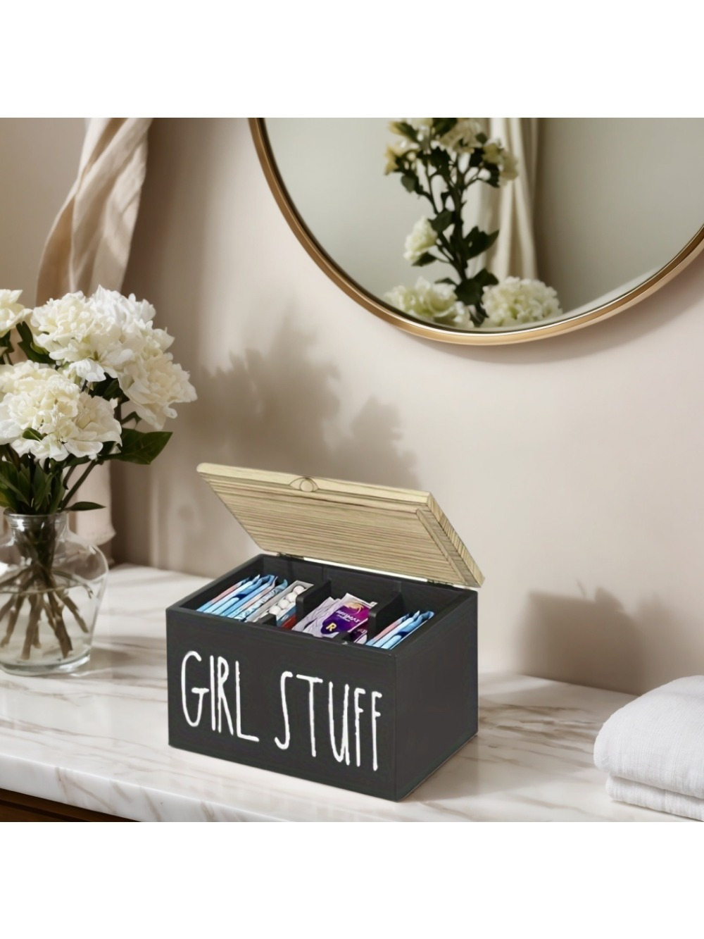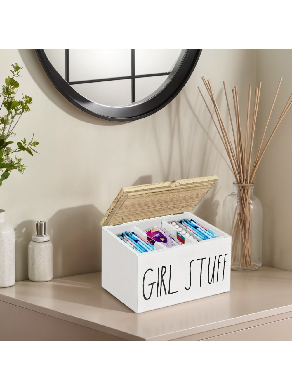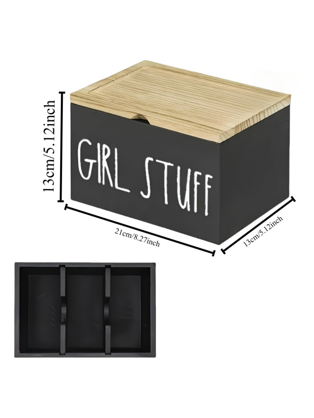 뚜껑이있는 재고 나무 욕실 탐폰 보관 상자 데스크탑 저장 상자 단단한 나무 구획 잡화 마무리