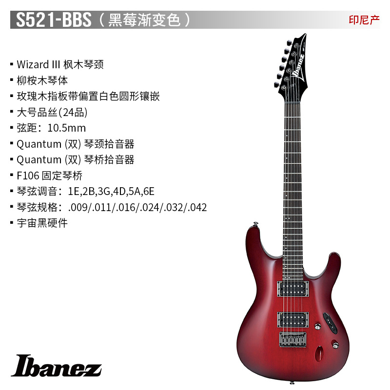 Ibanez 공식 플래그십 스토어 Ebbins Ibanna S521/S520 일렉트릭 기타 S 시리즈 얇은 바디