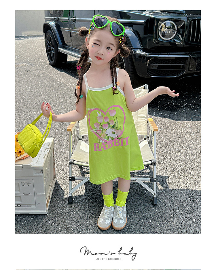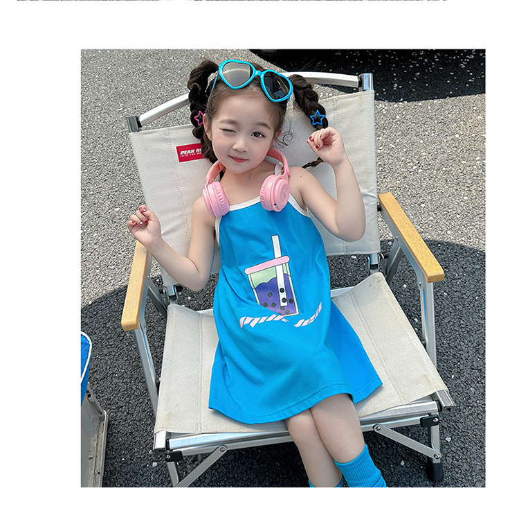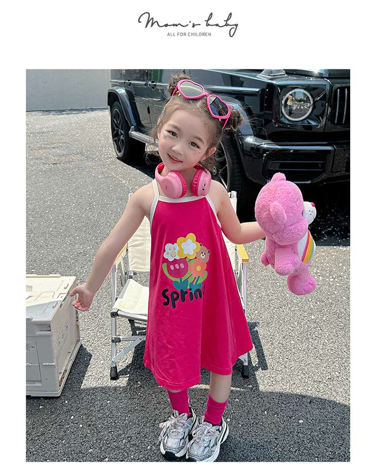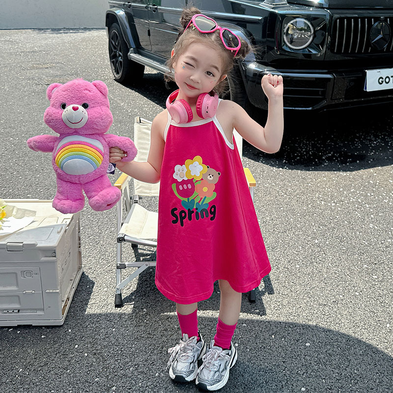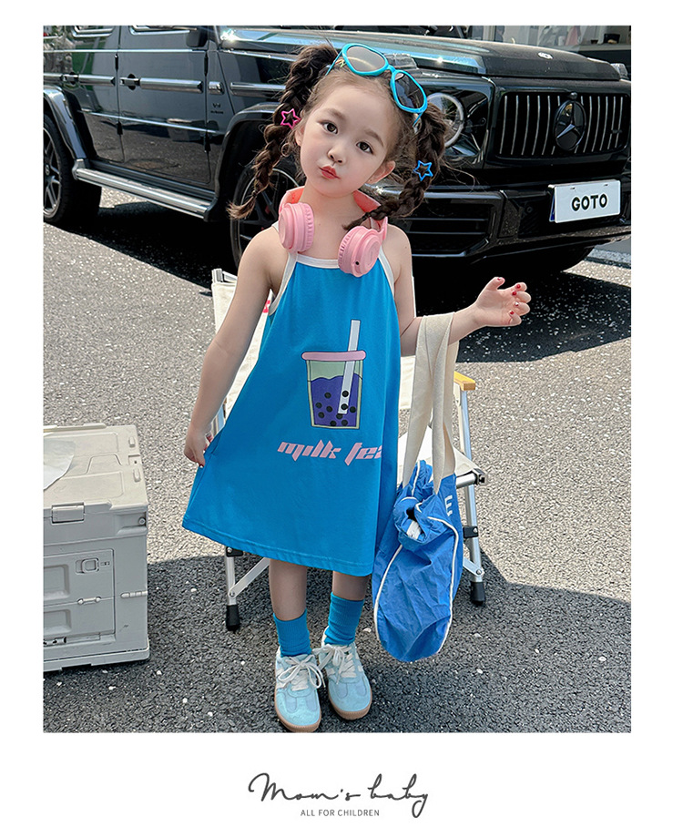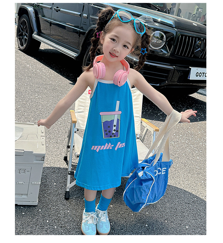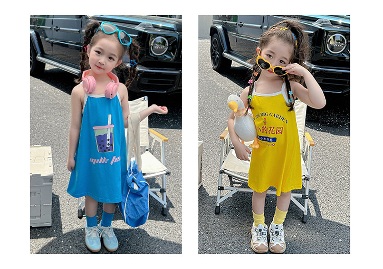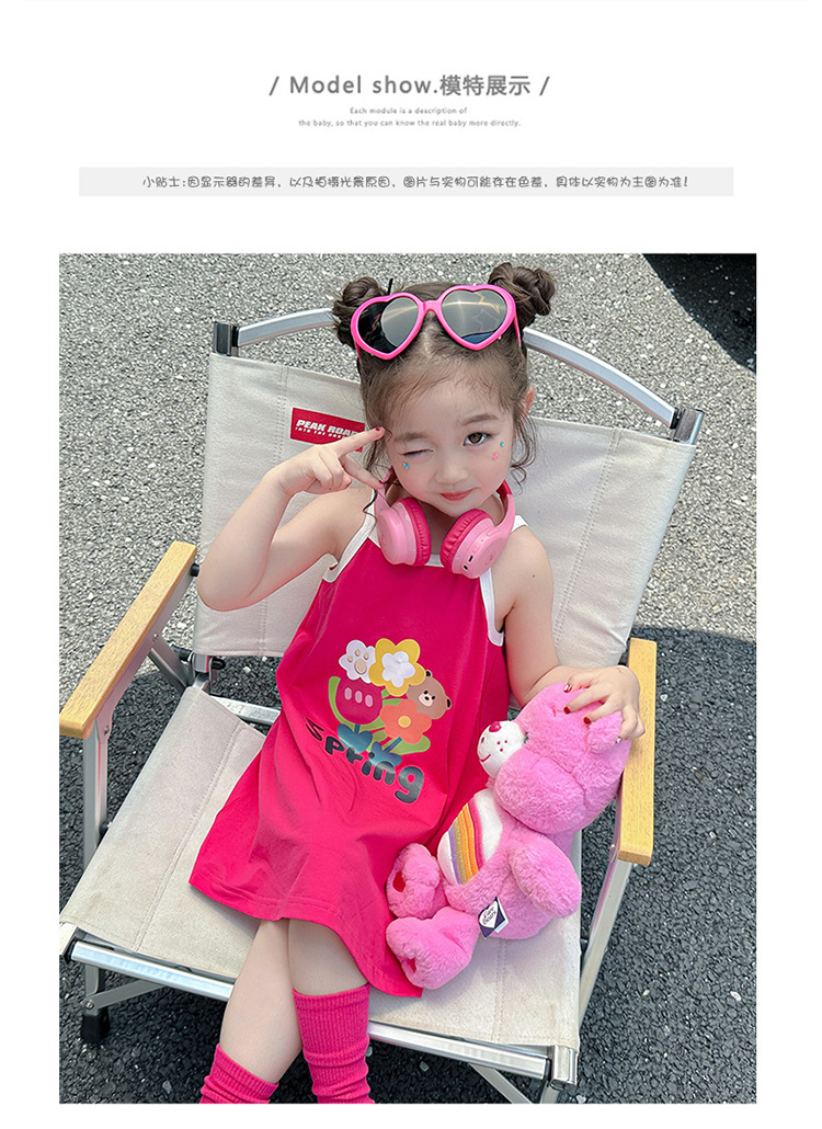 어린이 여름 여성의 시원한 통기성 만화 소녀 부드러운 조끼 한국식 홀터 스커트 도파민 착용 원피스스토어 가기