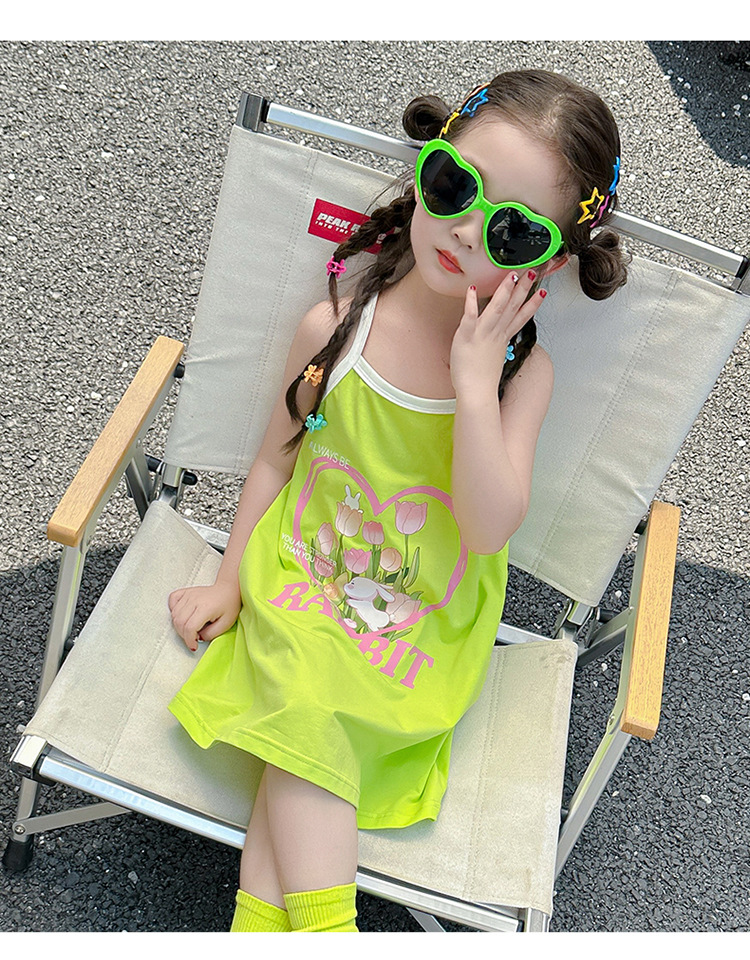 어린이 여름 여성의 시원한 통기성 만화 소녀 부드러운 조끼 한국식 홀터 스커트 도파민 착용 원피스