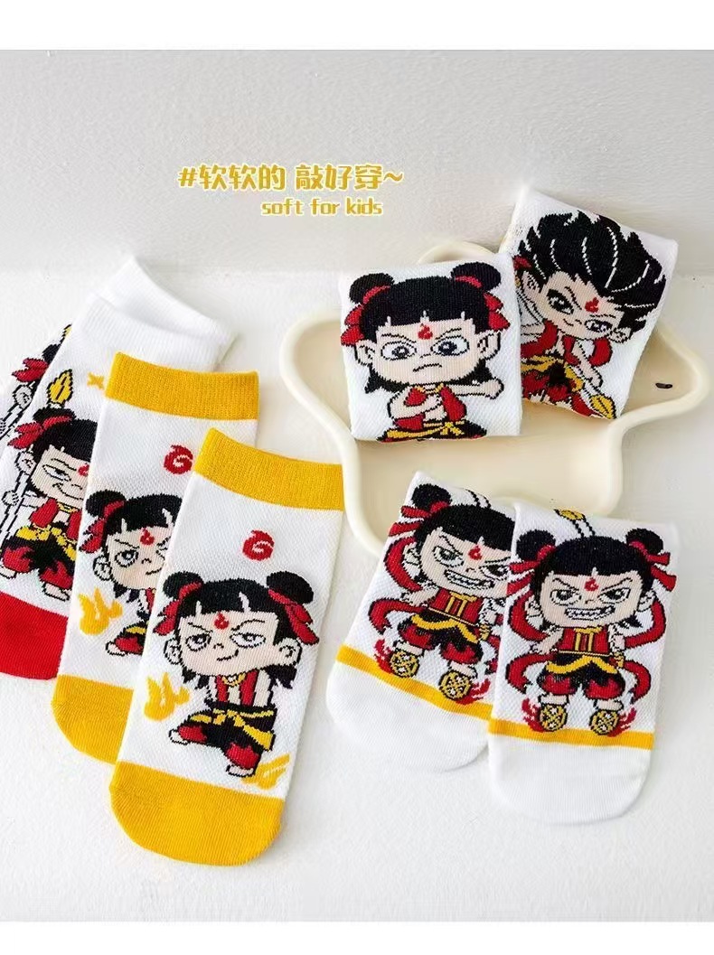 어린이 양말 여름 얇은 메쉬 짧은 양말 Nezha 아기 만화 소녀 소년 양말 봄과 여름 학생 보트 양말스토어 가기