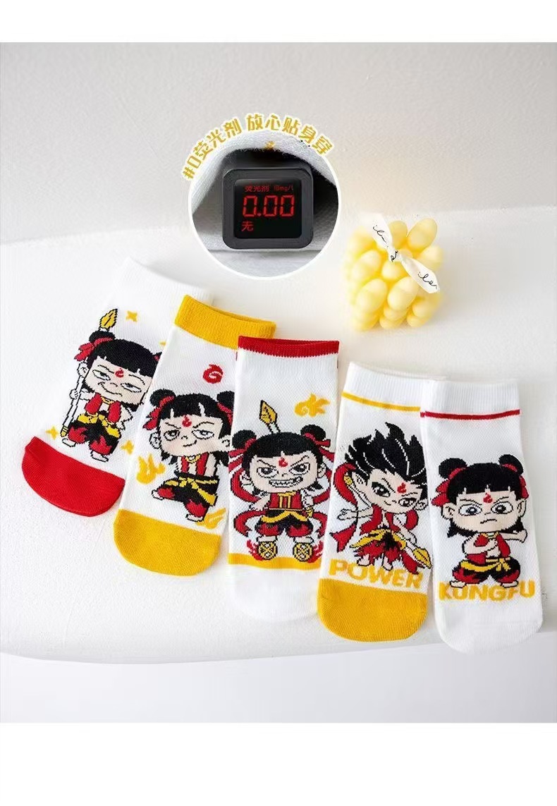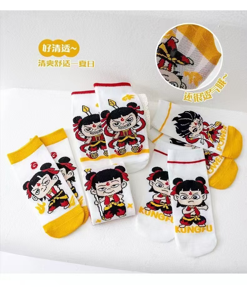 어린이 양말 여름 얇은 메쉬 짧은 양말 Nezha 아기 만화 소녀 소년 양말 봄과 여름 학생 보트 양말
