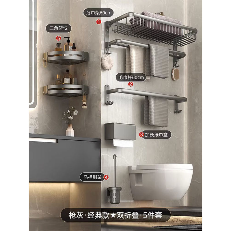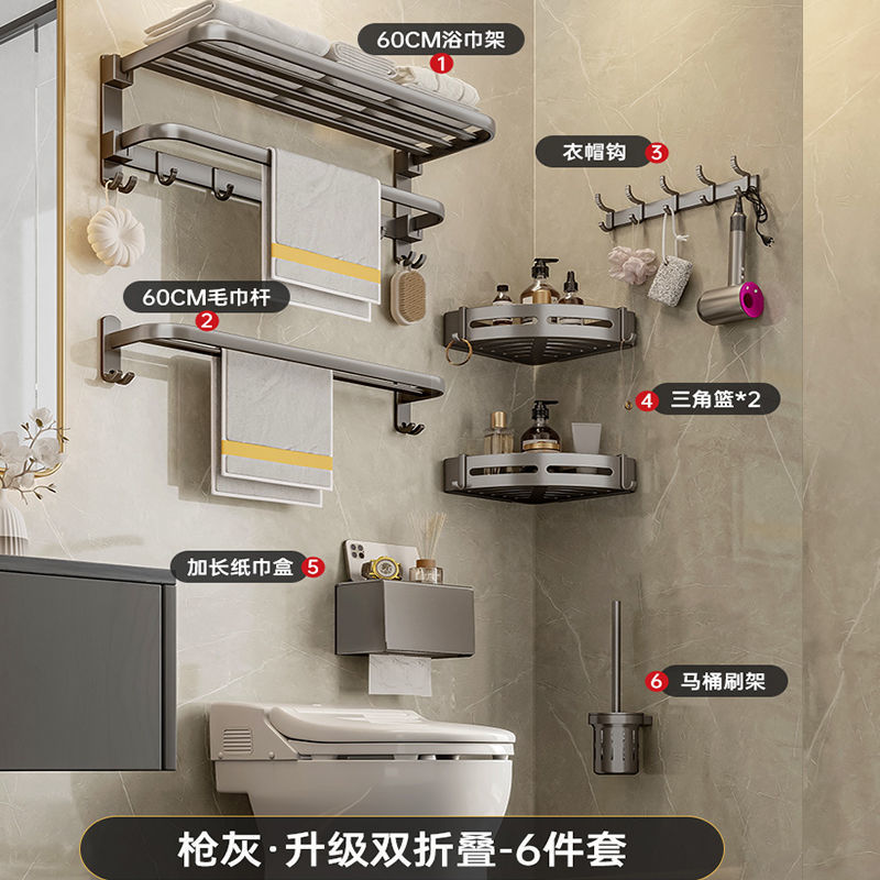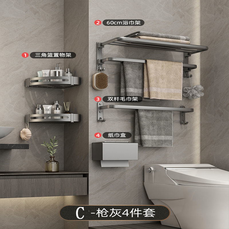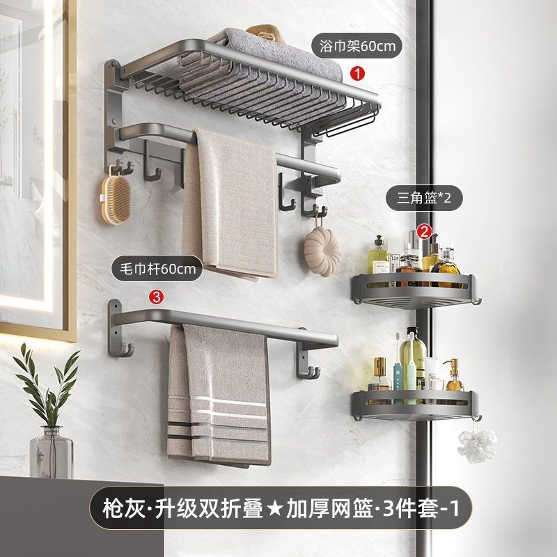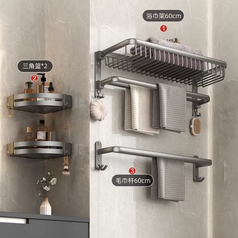 공간 알루미늄 욕실 타월 랙 펀치가없는 화장실 화장실 보관 랙 의류 보관 벽걸이 워시스토어 가기