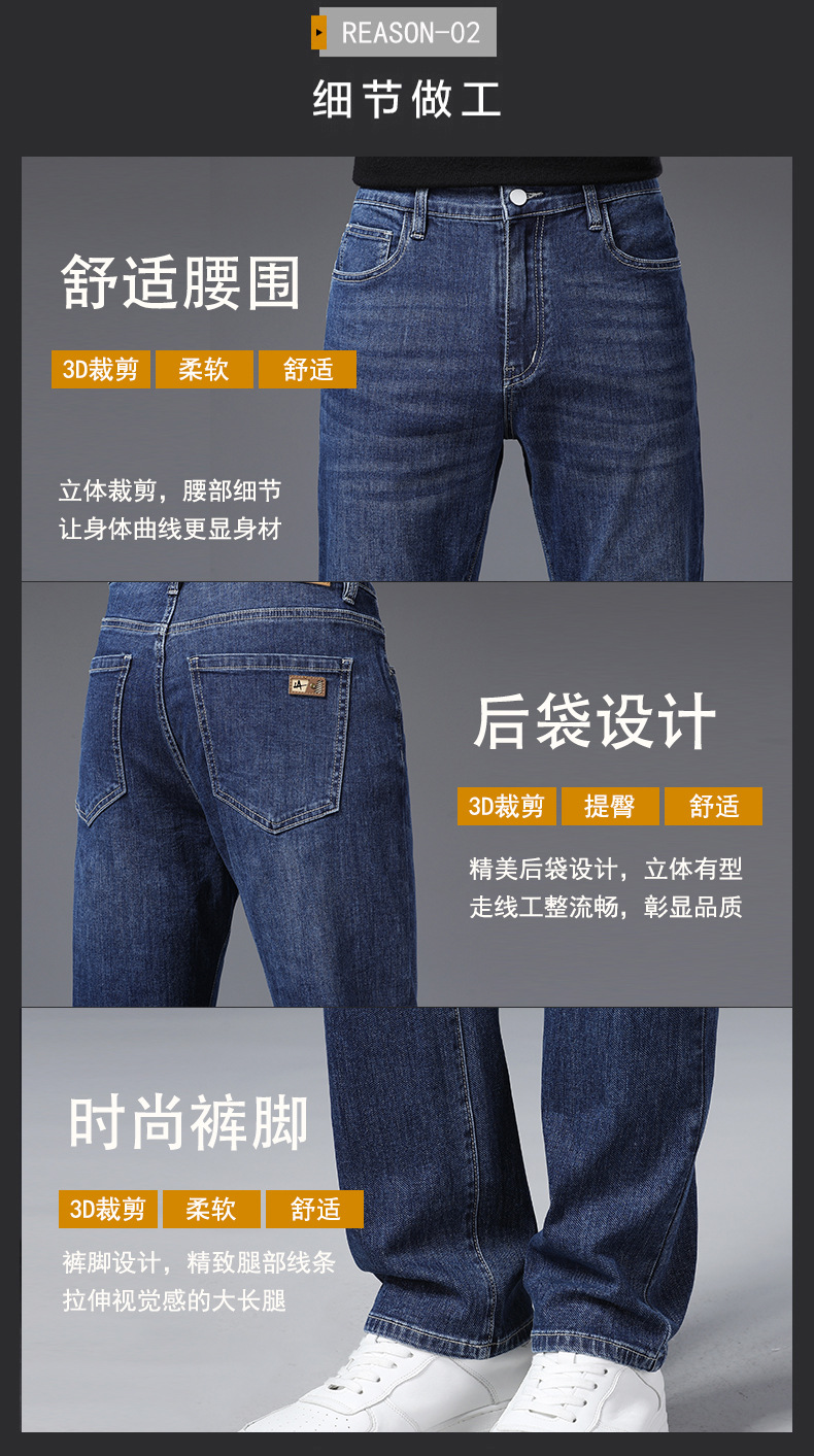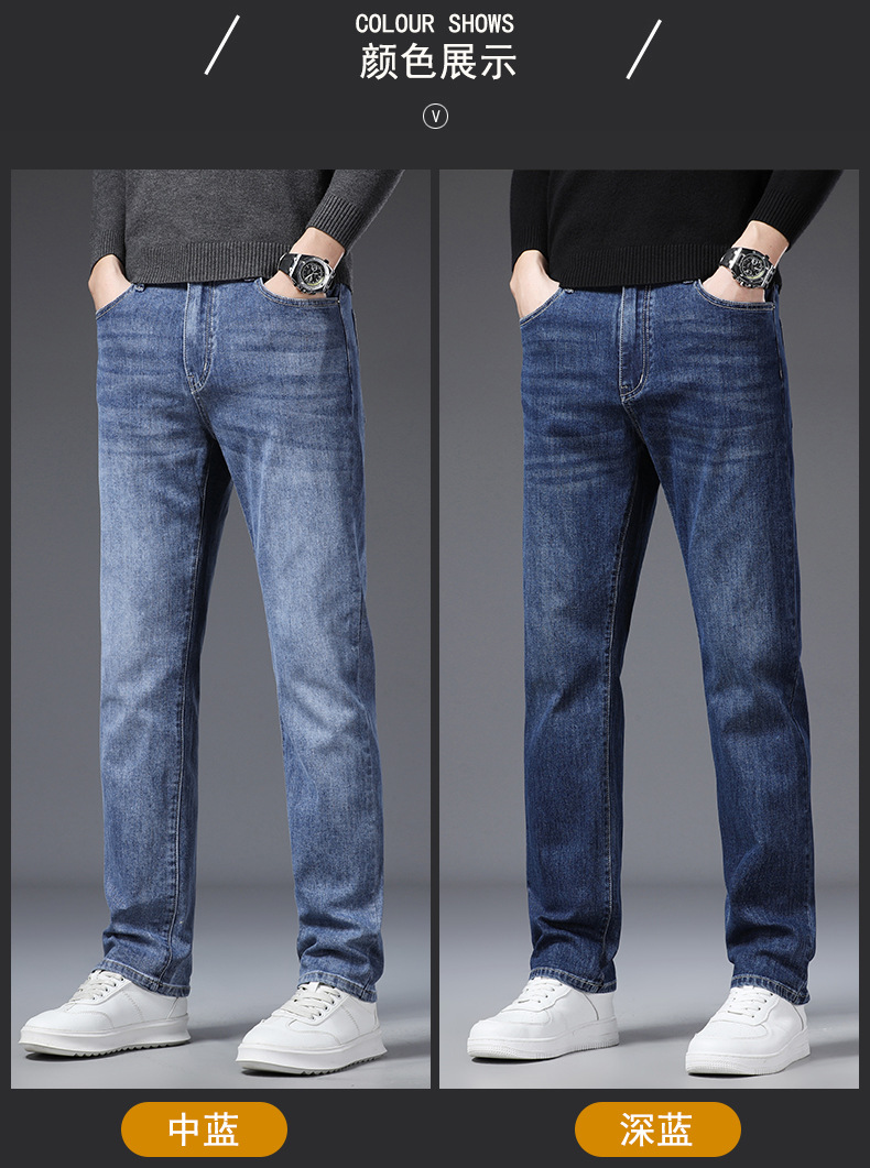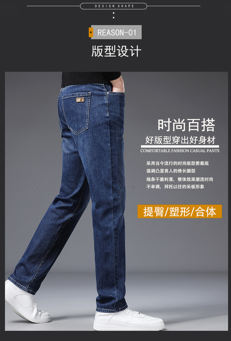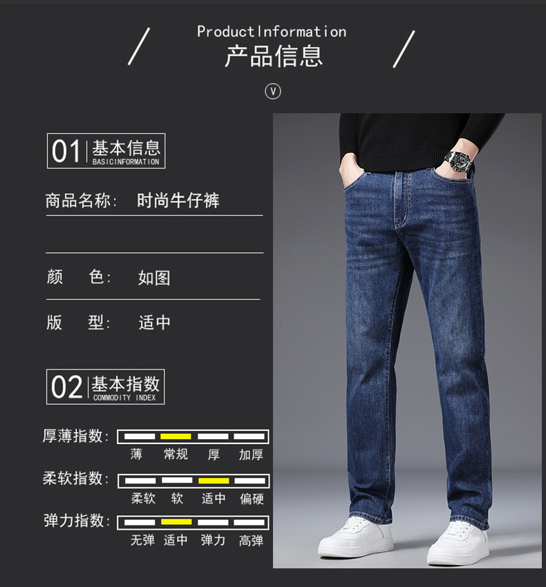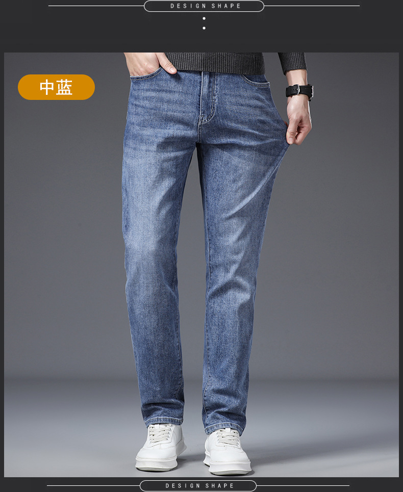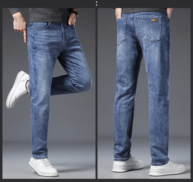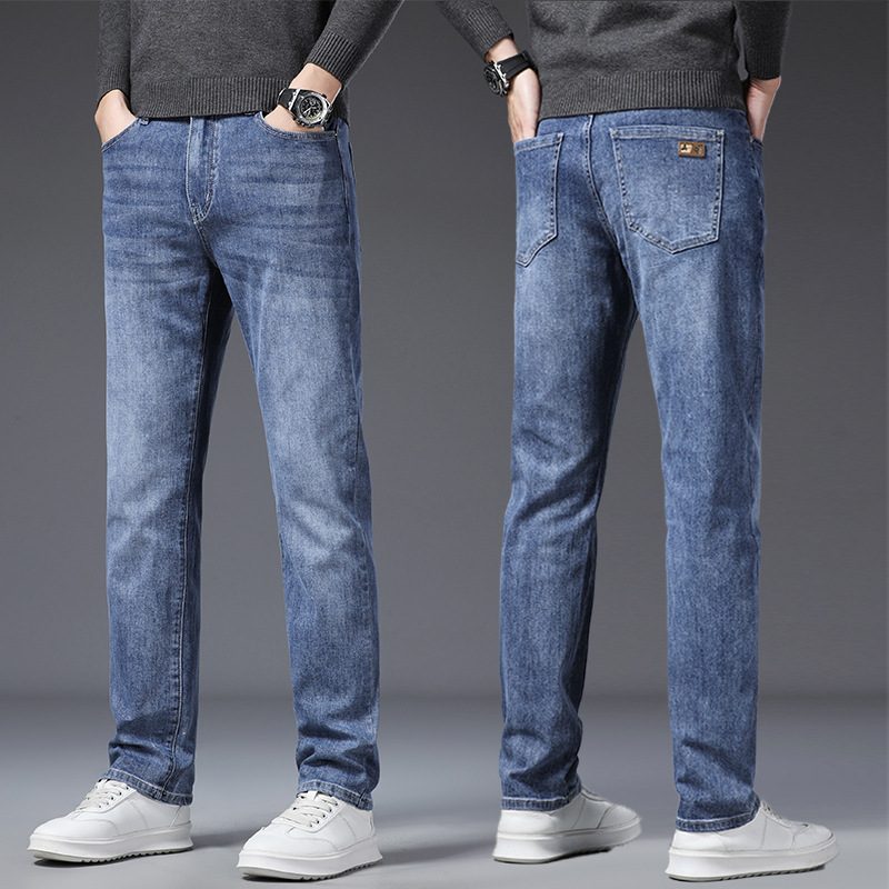 하이 퀄리티 봄과 여름 비즈니스 캐주얼 청바지 남성용 느슨한 스트레이트 스트레치 슬림 청바지 헤어 세대스토어 가기