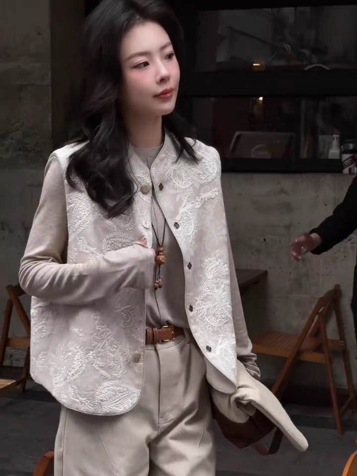 하이 엔드 자카드 의상 세트 조끼 카디건 재킷 여성의 이른 봄과 가을 새로운 중국 스타일 국가 스타일 조끼 탑스토어 가기