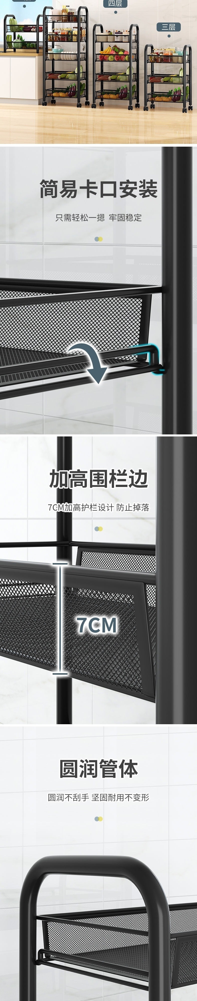 주방 보관 랙 가정용 저장 바닥-서 움직일 수있는 다층 카트 다기능 가정용 야채 바구니