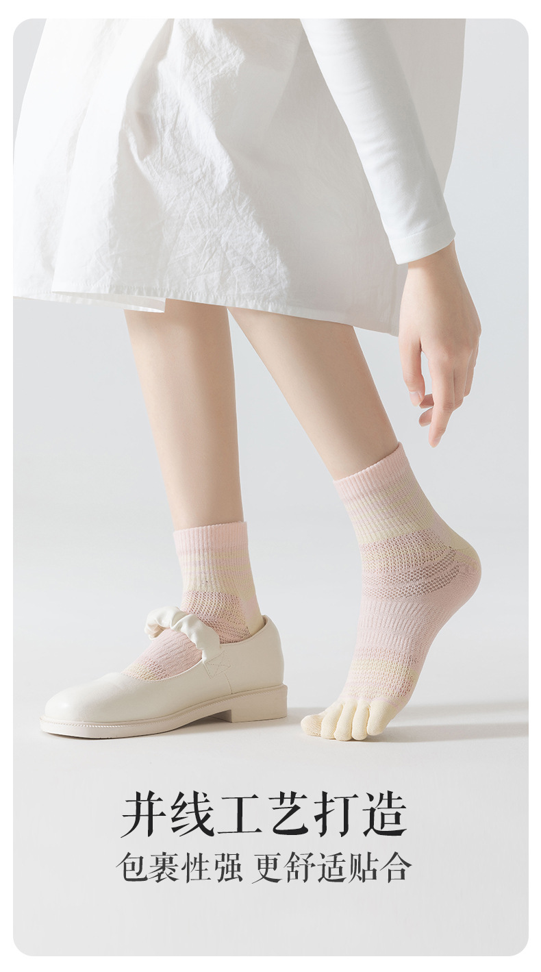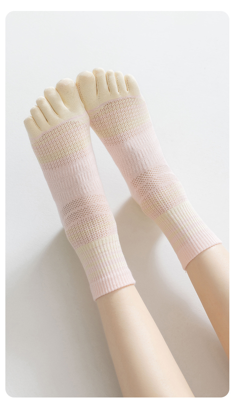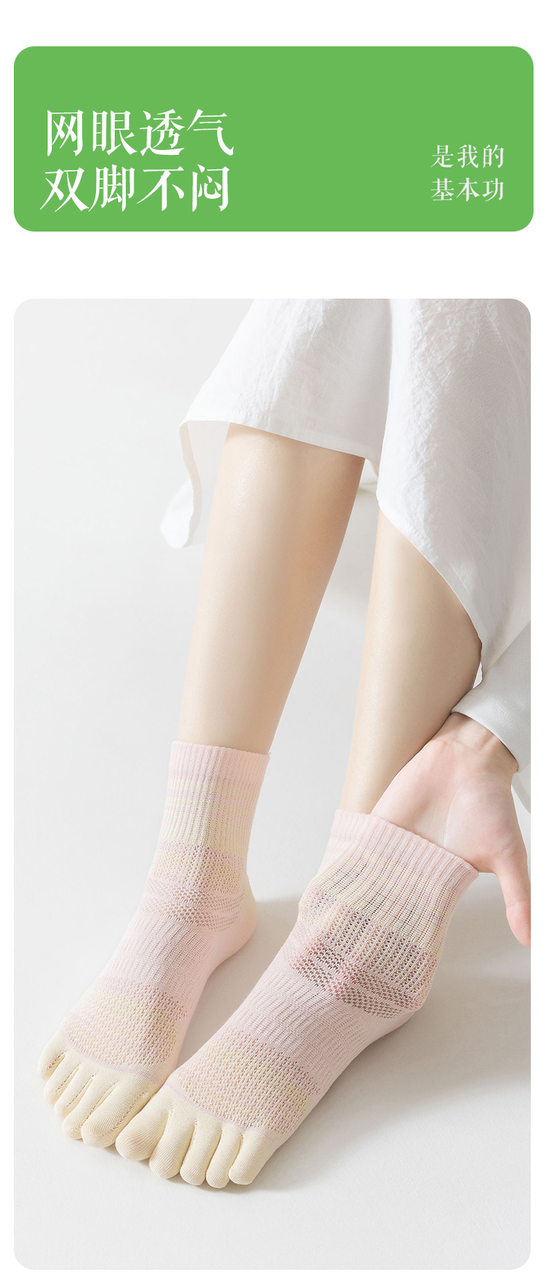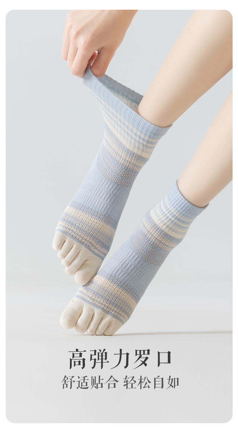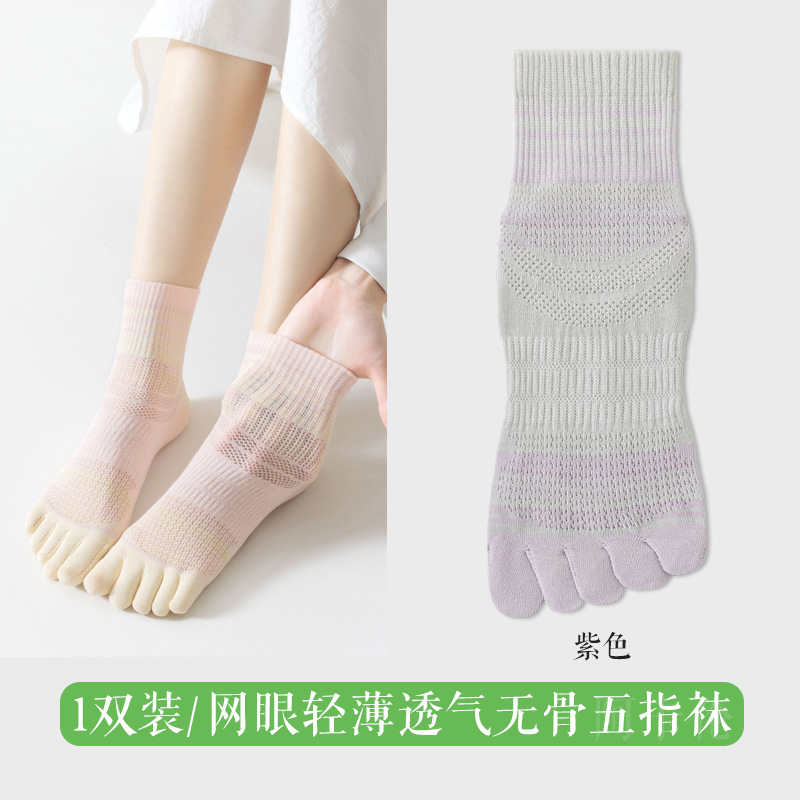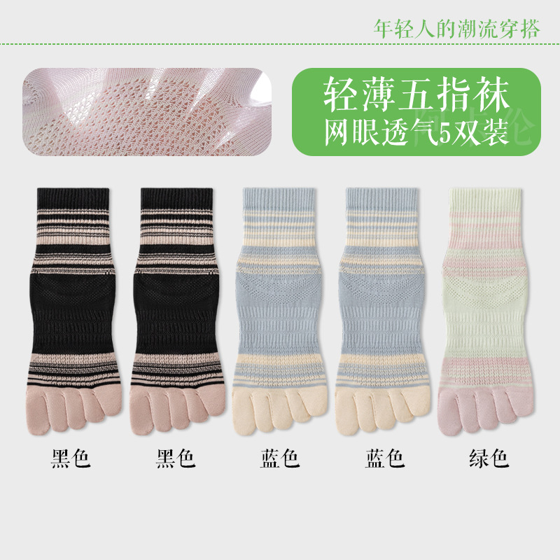 다섯 손가락 양말 여성의 봄과 여름 얇은 뼈없는 발가락 간단한 모든 경기 편안한 스포츠 스타일 메쉬 통기성 미드 튜브 양말