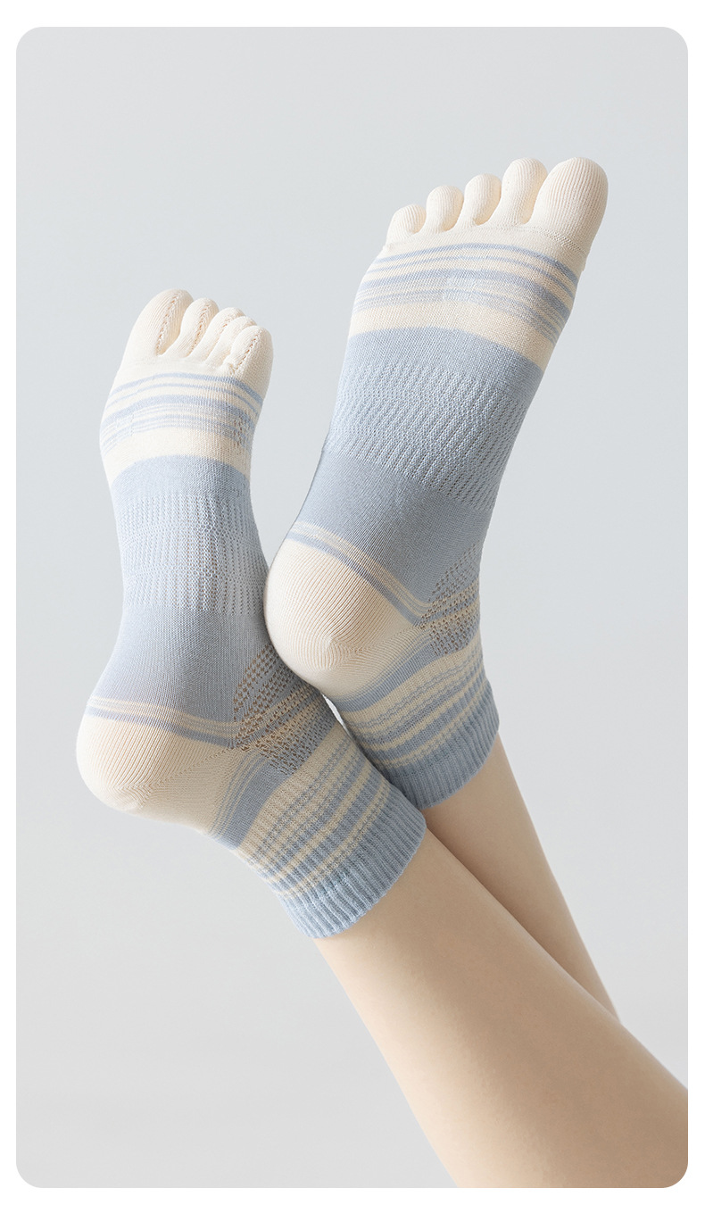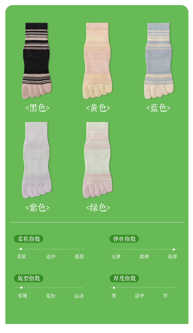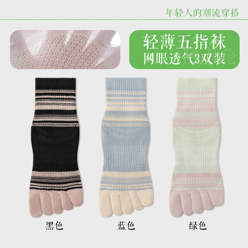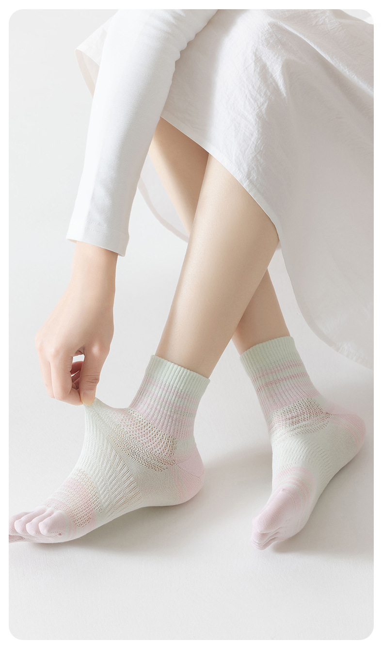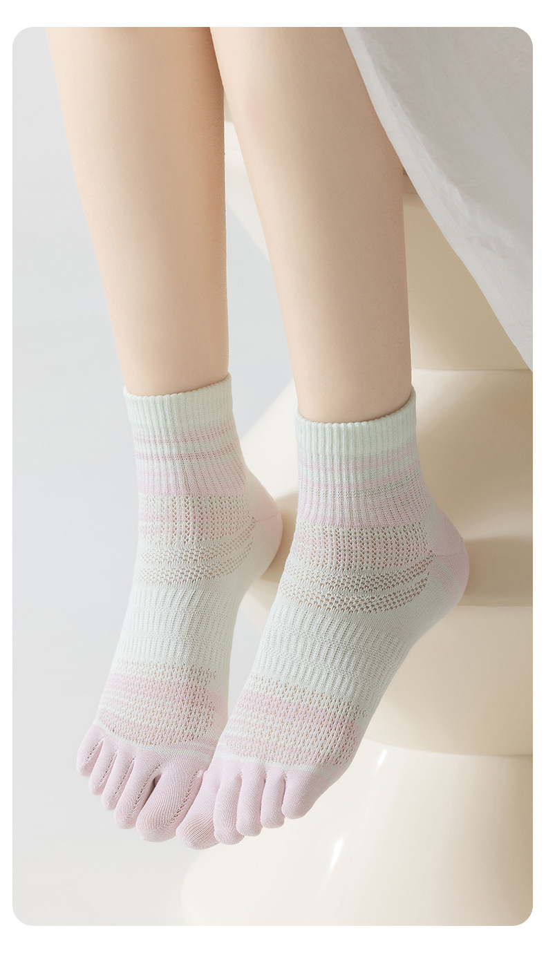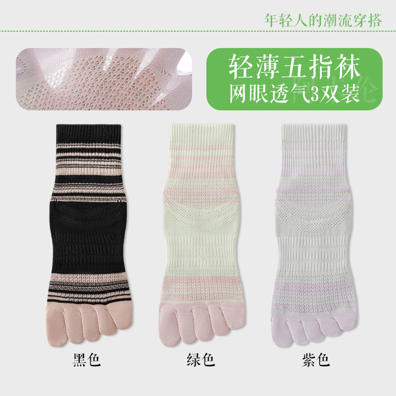 다섯 손가락 양말 여성의 봄과 여름 얇은 뼈없는 발가락 간단한 모든 경기 편안한 스포츠 스타일 메쉬 통기성 미드 튜브 양말