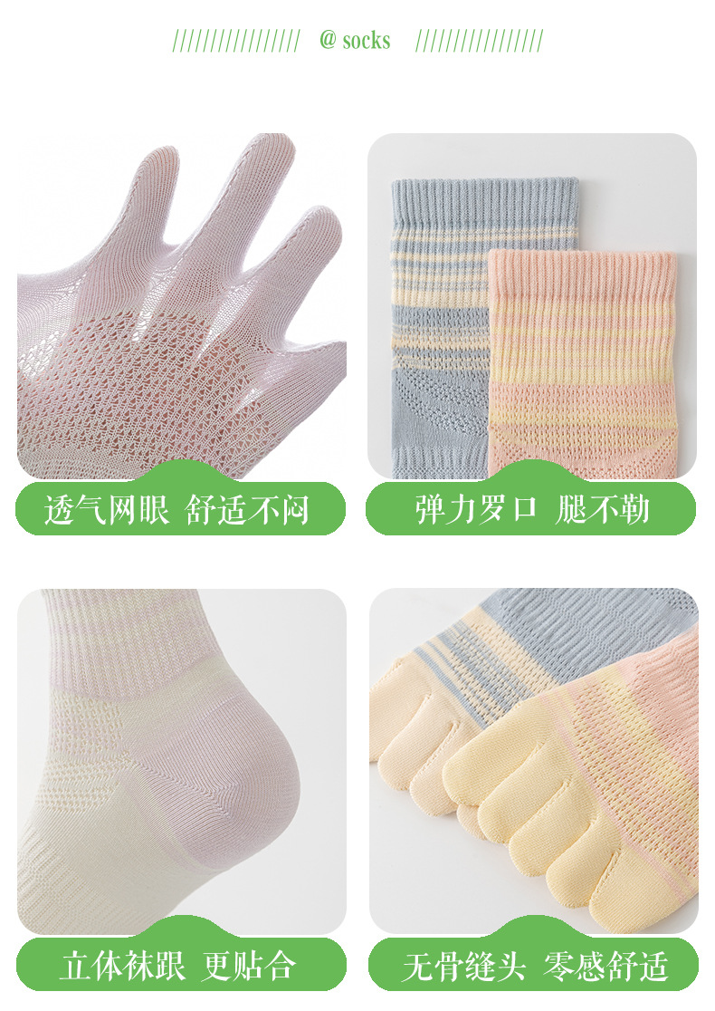 다섯 손가락 양말 여성의 봄과 여름 얇은 뼈없는 발가락 간단한 모든 경기 편안한 스포츠 스타일 메쉬 통기성 미드 튜브 양말스토어 가기