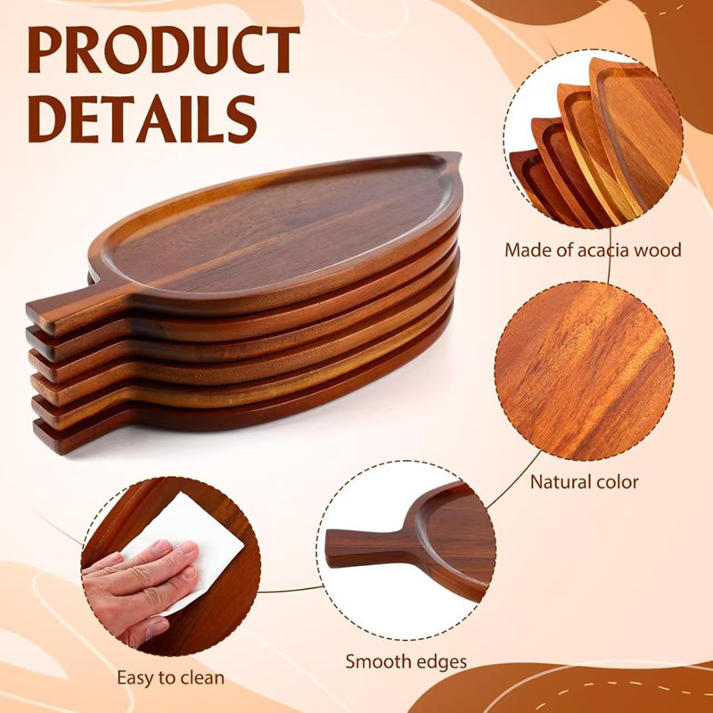 새로운 스타일 잎 나무 트레이 핸들 레스토랑 연어 초밥 플레이트 상부 접시 단단한 나무 과일 플레이트스토어 가기