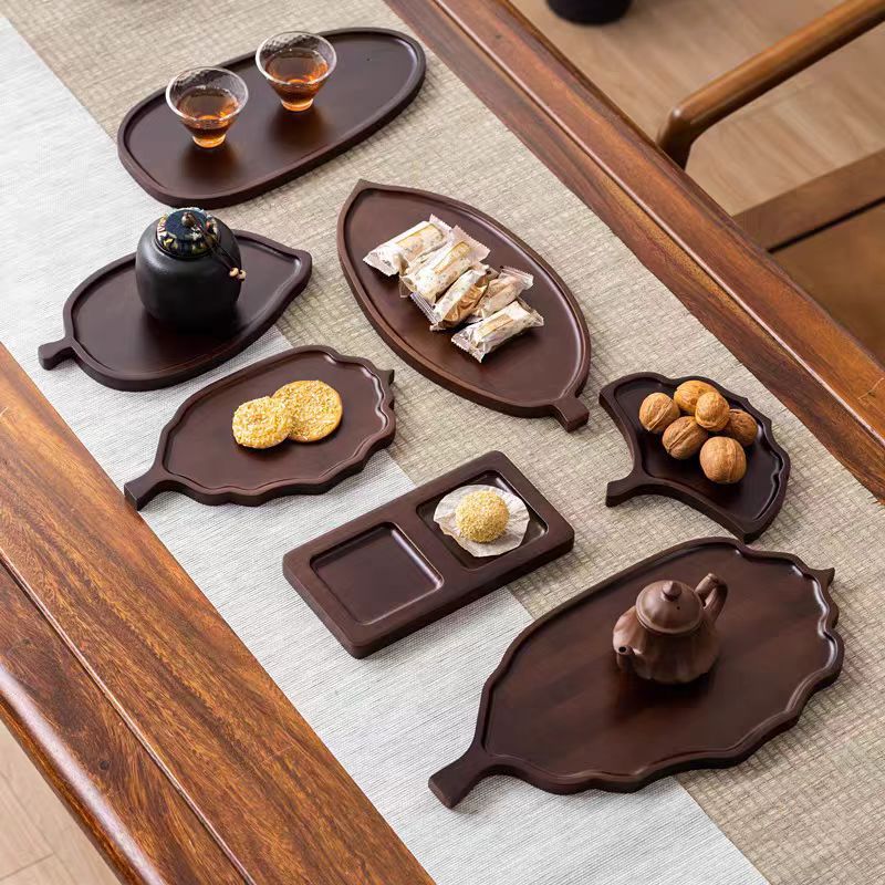 새로운 스타일 잎 나무 트레이 핸들 레스토랑 연어 초밥 플레이트 상부 접시 단단한 나무 과일 플레이트