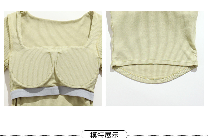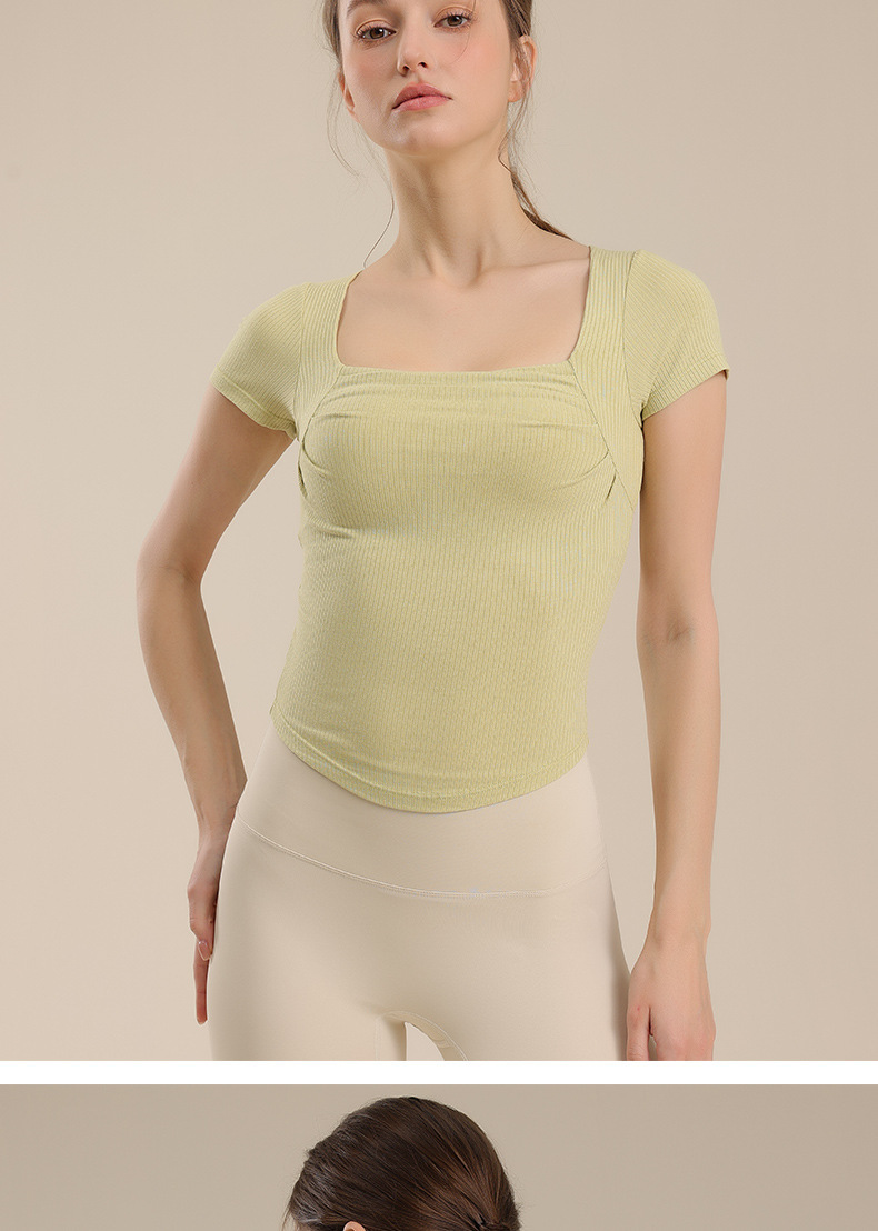 리브 주름 허리 스포츠 반팔 사각 목 슬림-가슴 매트 요가 옷으로 슬리밍 통기성 탄성 피트니스 탑