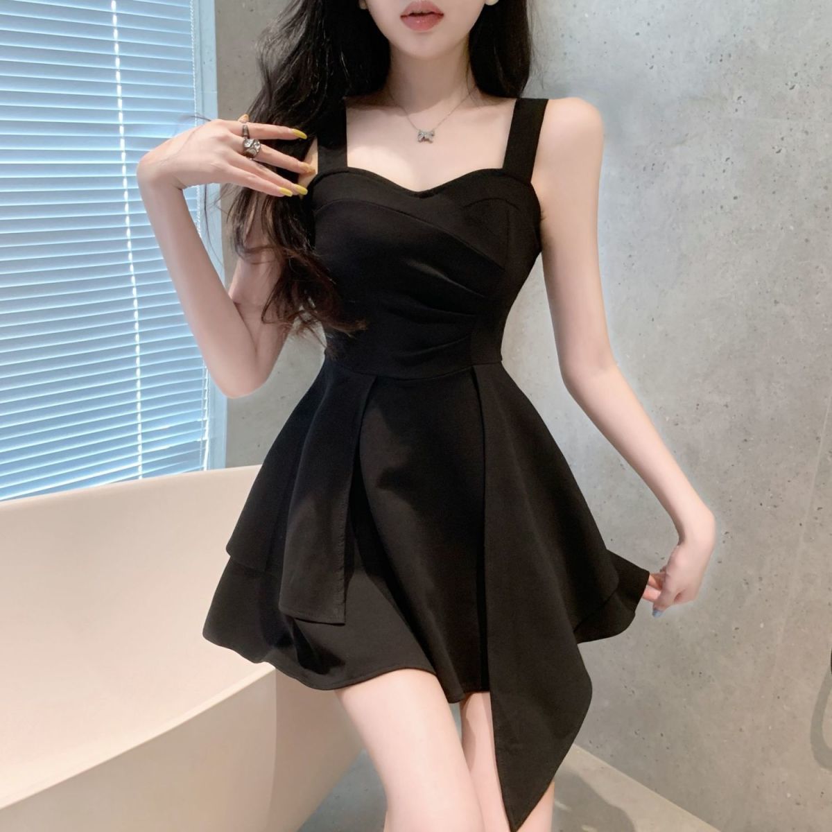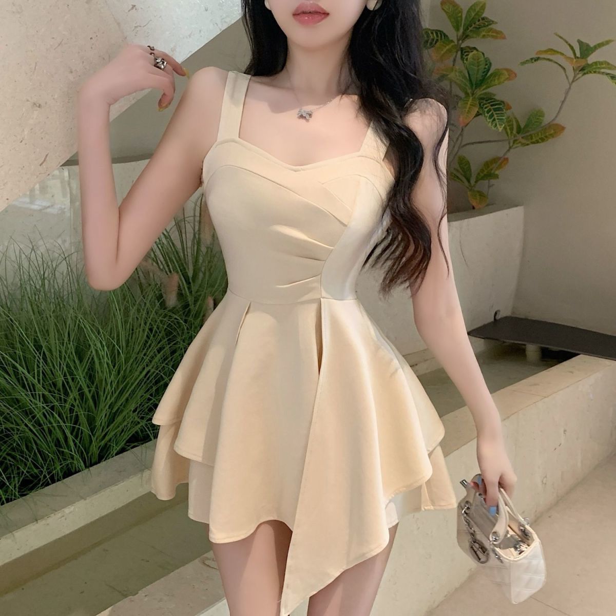 2025 슬링 원피스 새로운 프랑스 스타일 달콤하고 매운 우아한 서양 스타일 슬림 핏 여름 유행 슬림 핏 치마스토어 가기