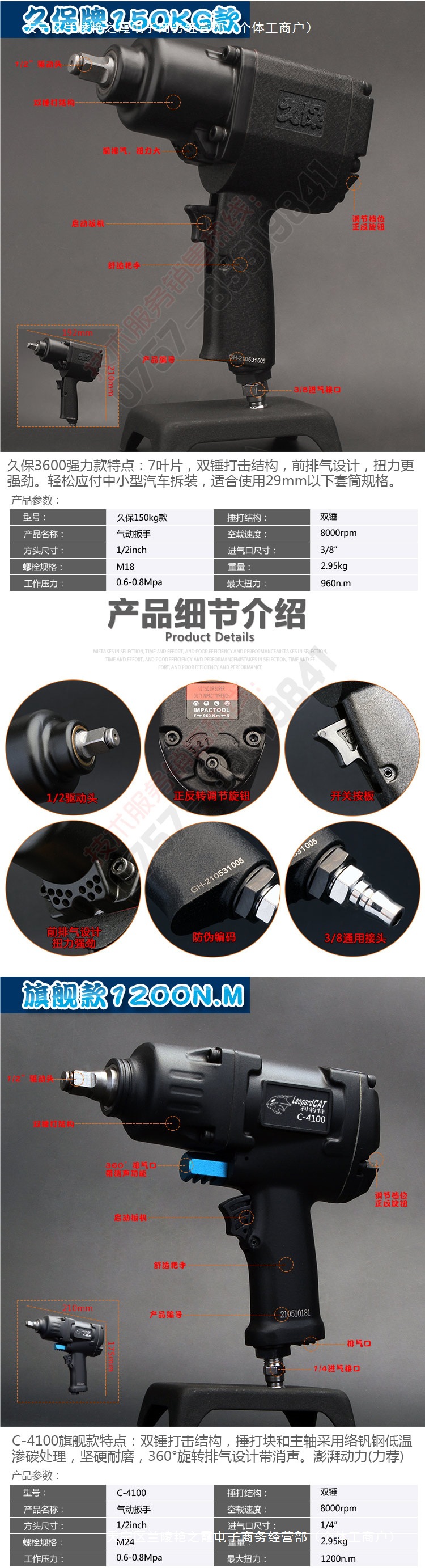 일본 Kubo 공압 렌치 산업 고출력 작은 공기 대포 미니 자동 수리 도구 1/2 바람 렌치스토어 가기