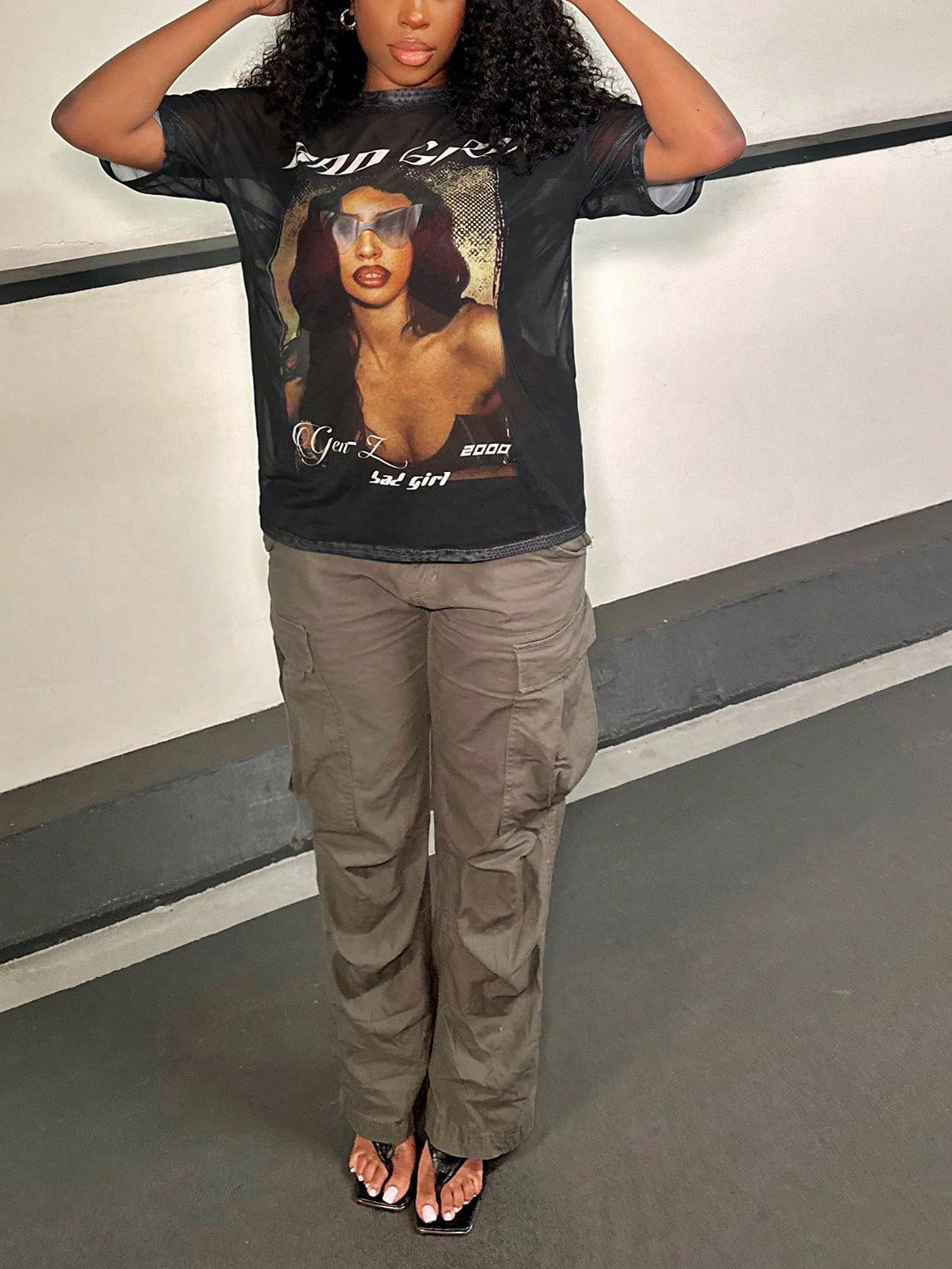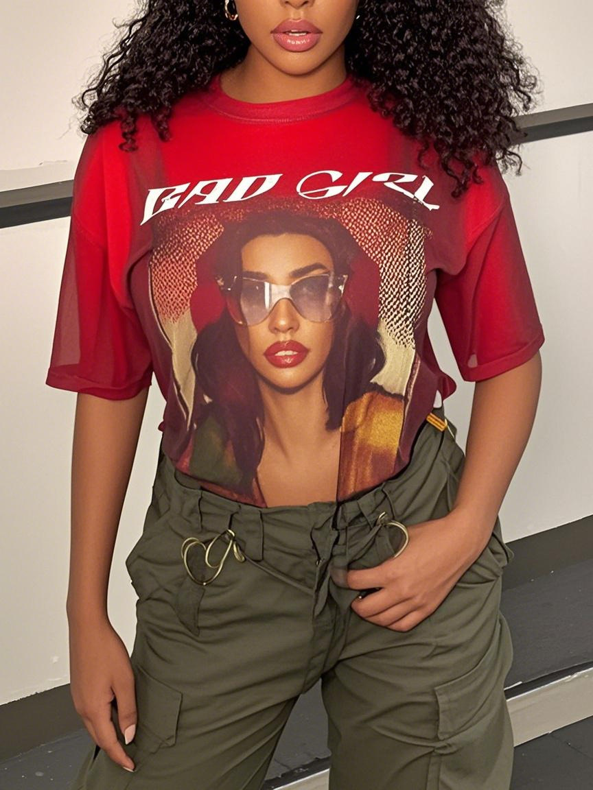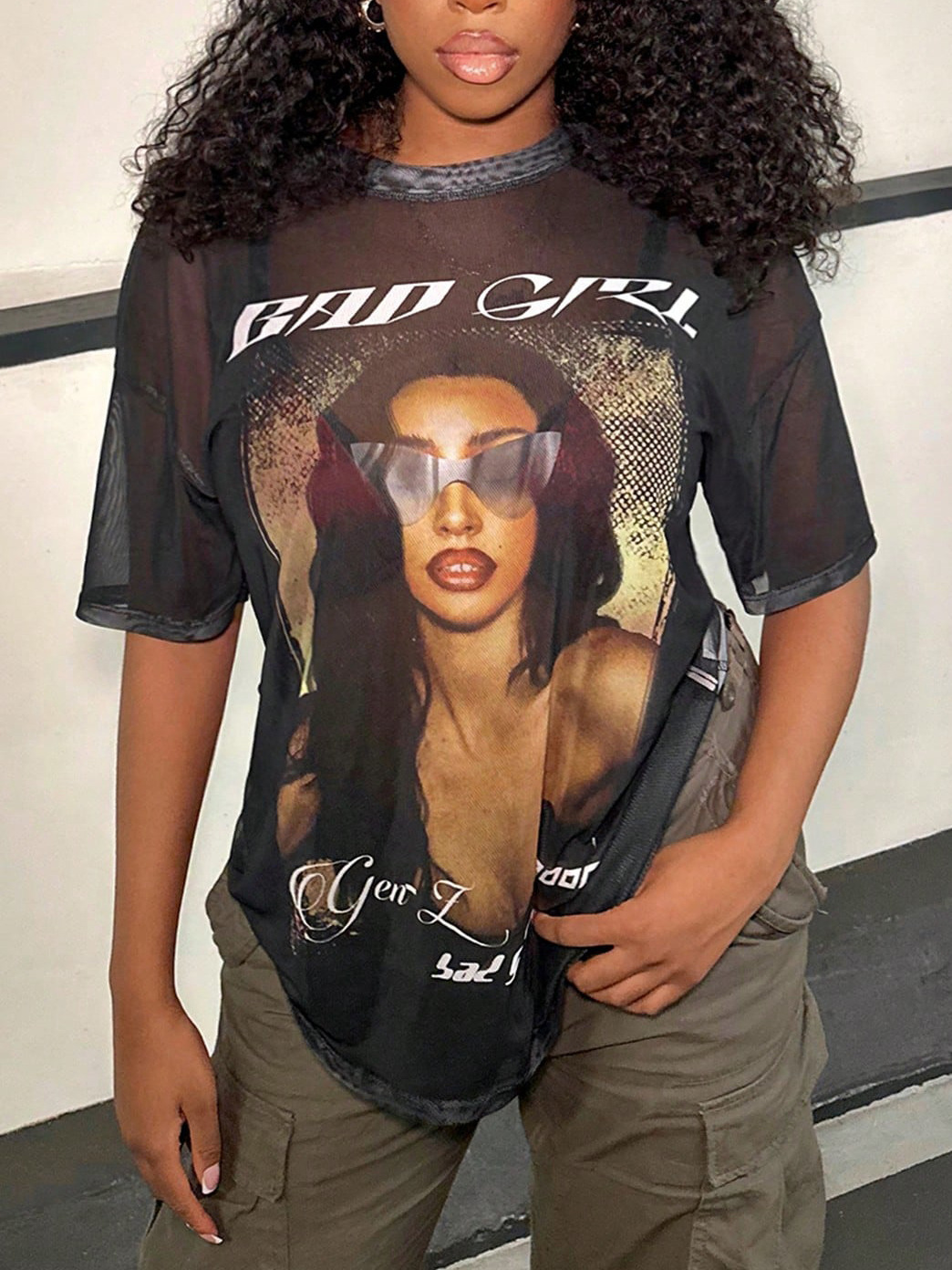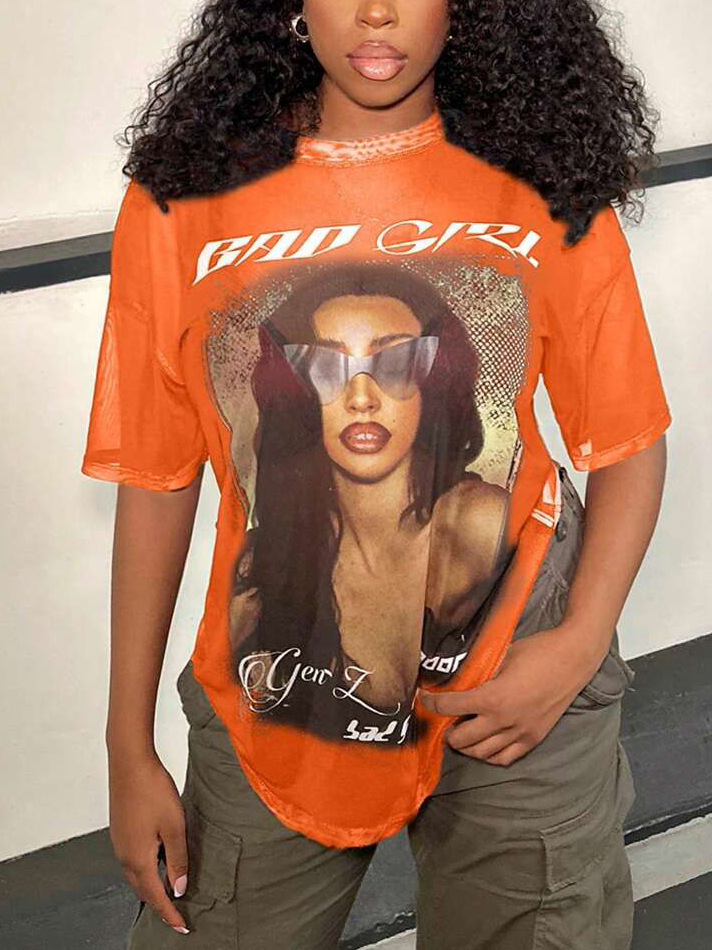 유럽과 미국의 대외 무역 여름 새로운 숙녀 tk 아마존 메쉬 티셔츠 레저 매일 3D 디지털 인쇄