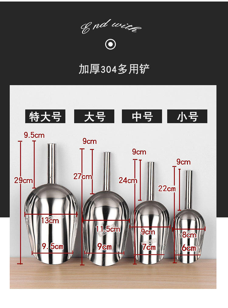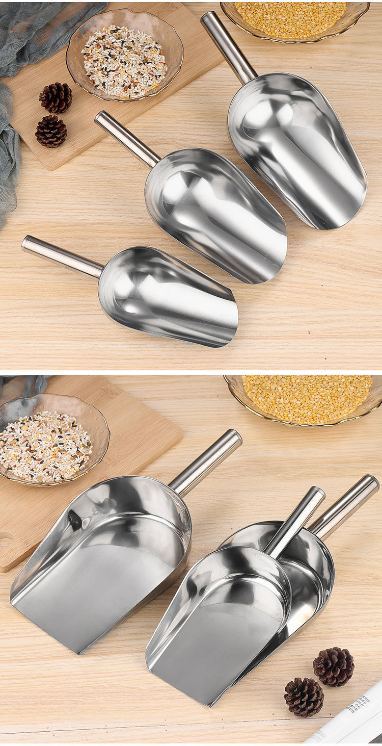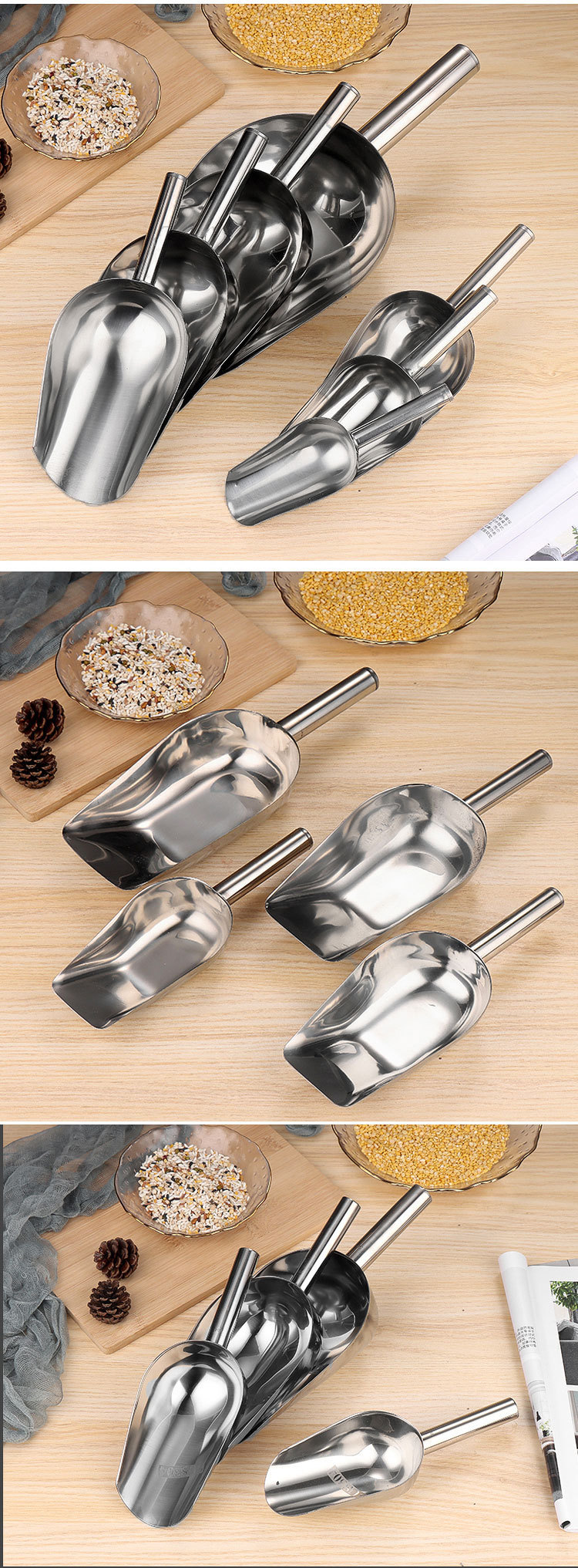 두꺼운 스테인레스 스틸 얼음 삽 차 스푼 밀가루 콩 삽 설탕 삽 쌀 상점 거친 곡물 차 삽 음식 삽 다목적 삽스토어 가기